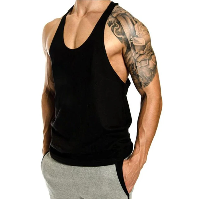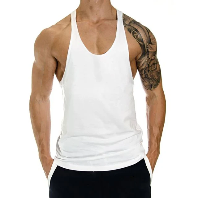 Men’s Fitness Solid Color Sports Running Vest Training Breathable Sleeveless T-shirt Cotton Moisture-absorbing