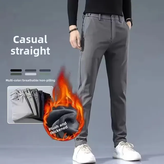 Men’s Fleece-Lined Casual Trousers New Winter Collection Thickened Warm Business Pants Slims Your