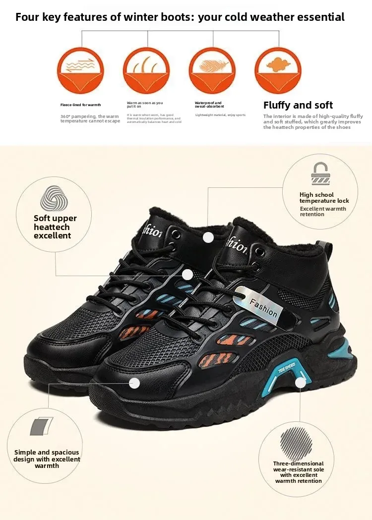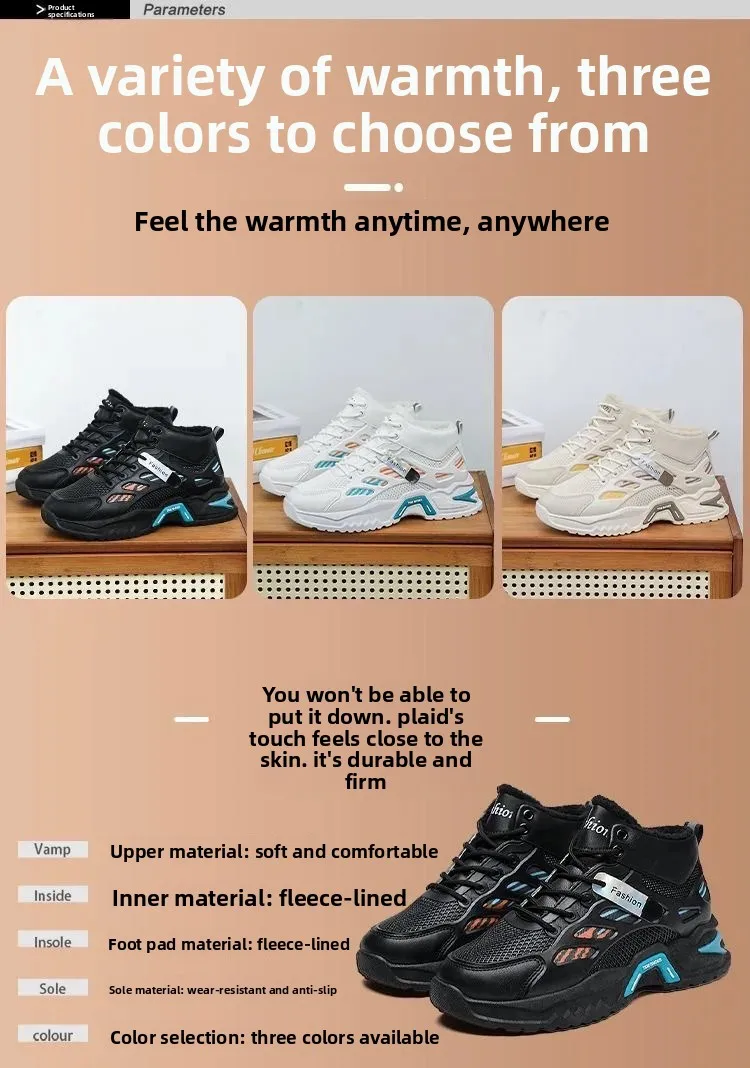 • Fleece-Lined Warmth : Experience cozy winter walks with our fleece-lined high-top shoes, designed to keep your feet warm and snug.