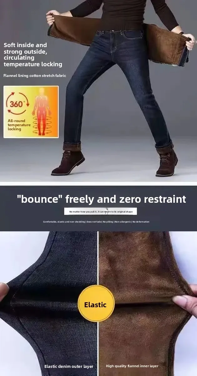 • Fleece-Lined Design : Experience warmth and comfort with our fleece-lined jeans, perfect for autumn and winter wear.