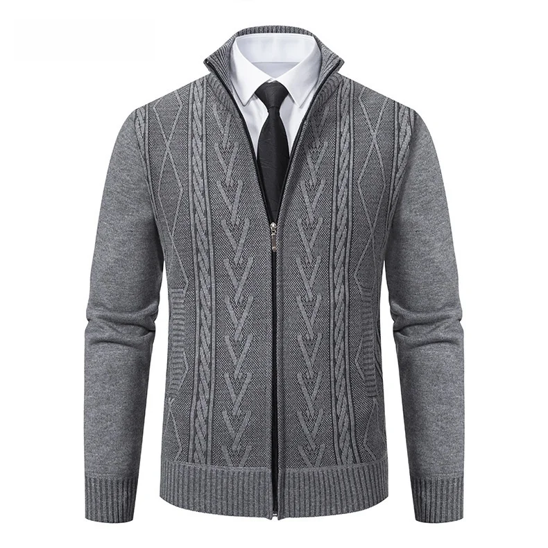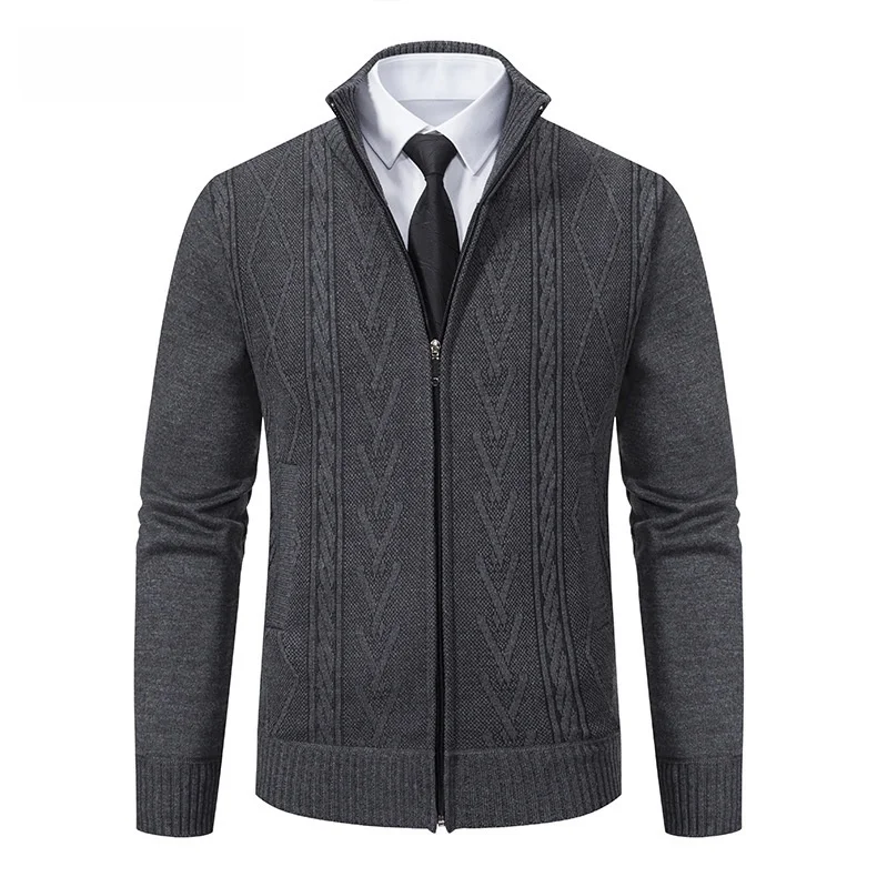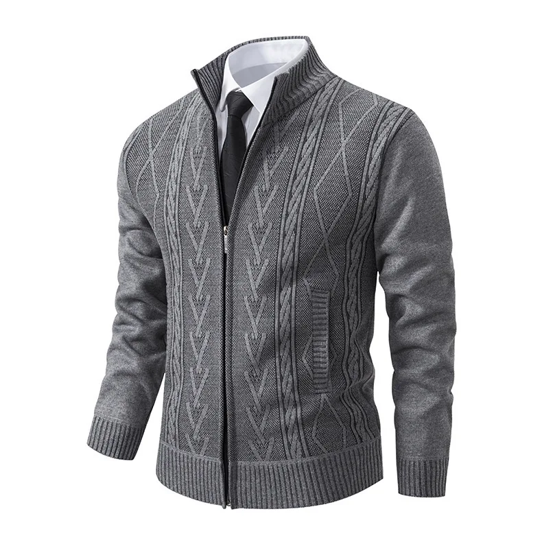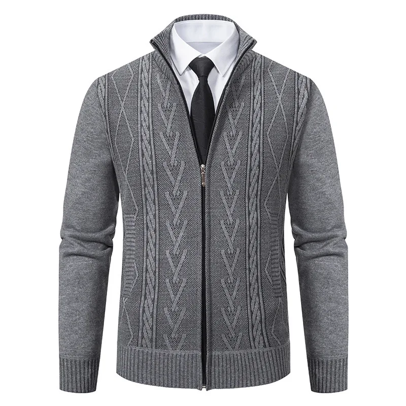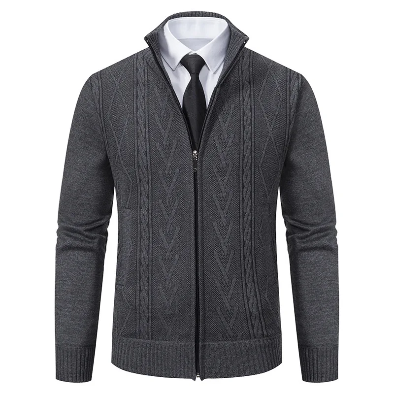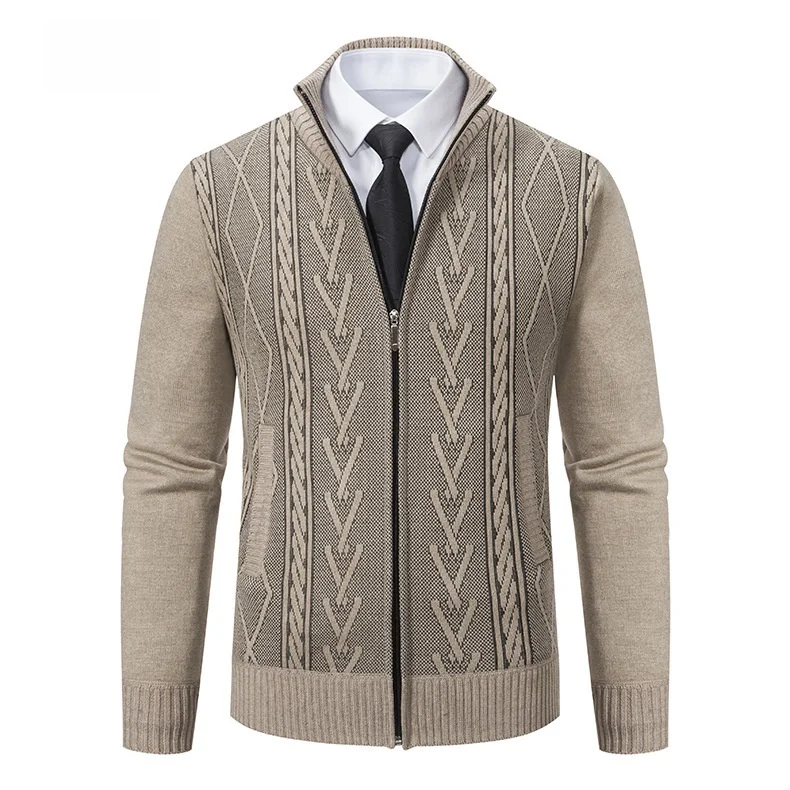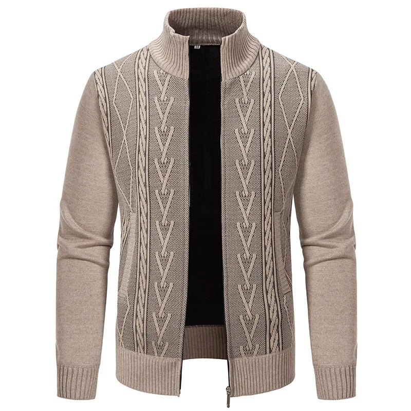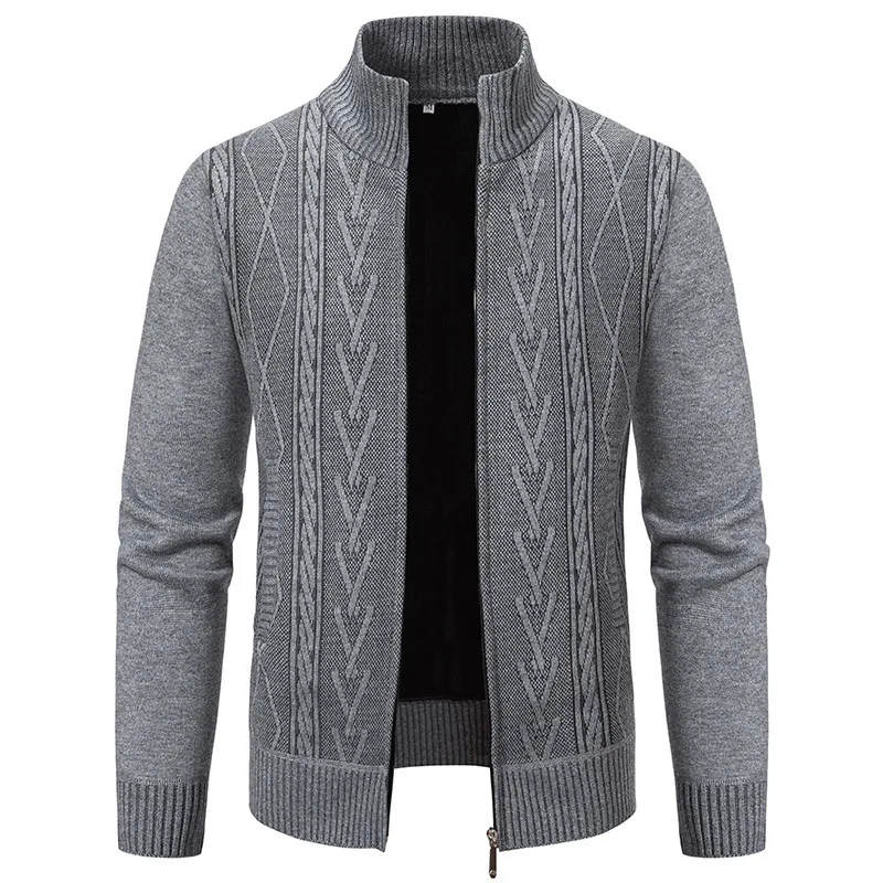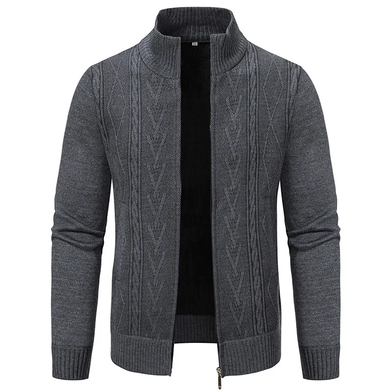 Men’s Fleece Lined Thickened Stand Collar Knitted Cardigan Winter New Style Korean Version Loose