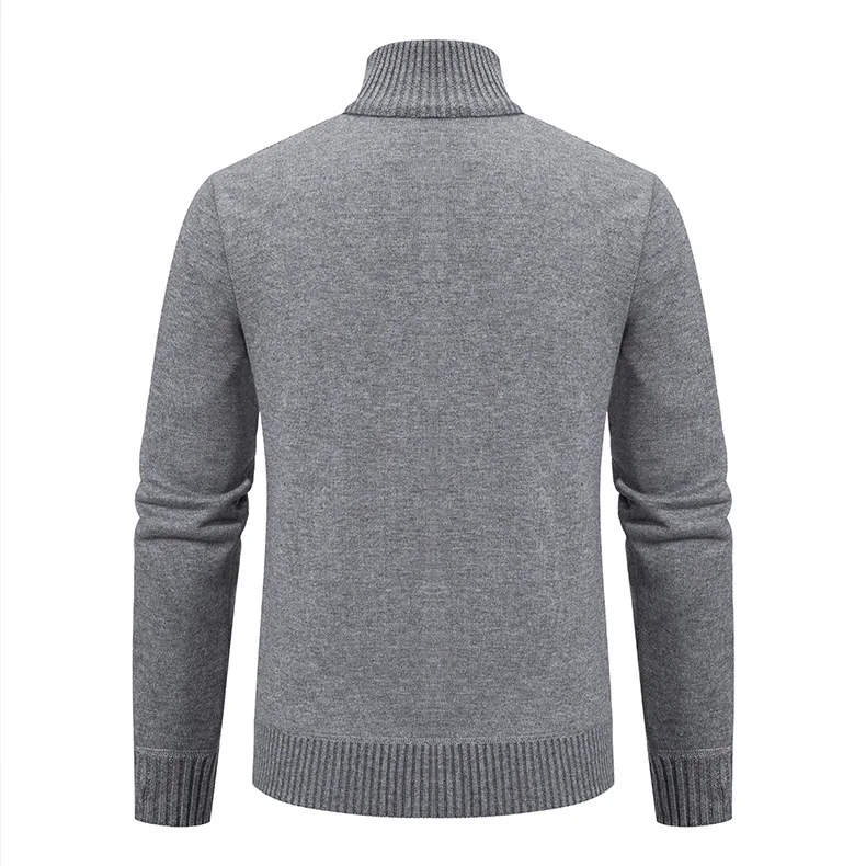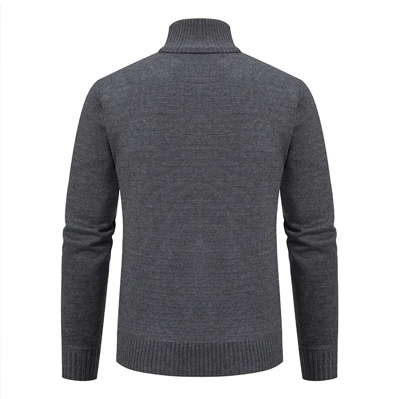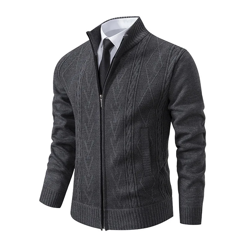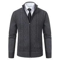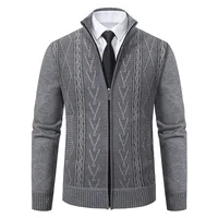 Men's Fleece Lined Thickened Stand Collar Knitted Cardigan Winter New Style Korean Version Loose Fit Long Sleeve Casual Wear