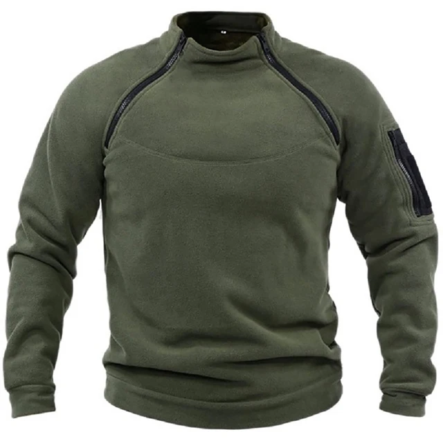 3.This fleece military training pullover shirt for men features a Stand Collar seals in warmth,front symmetrical Zip Closure makes it easy to take on and off