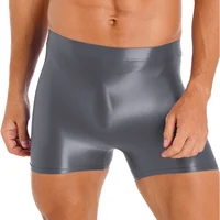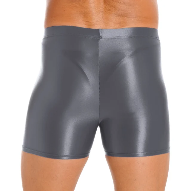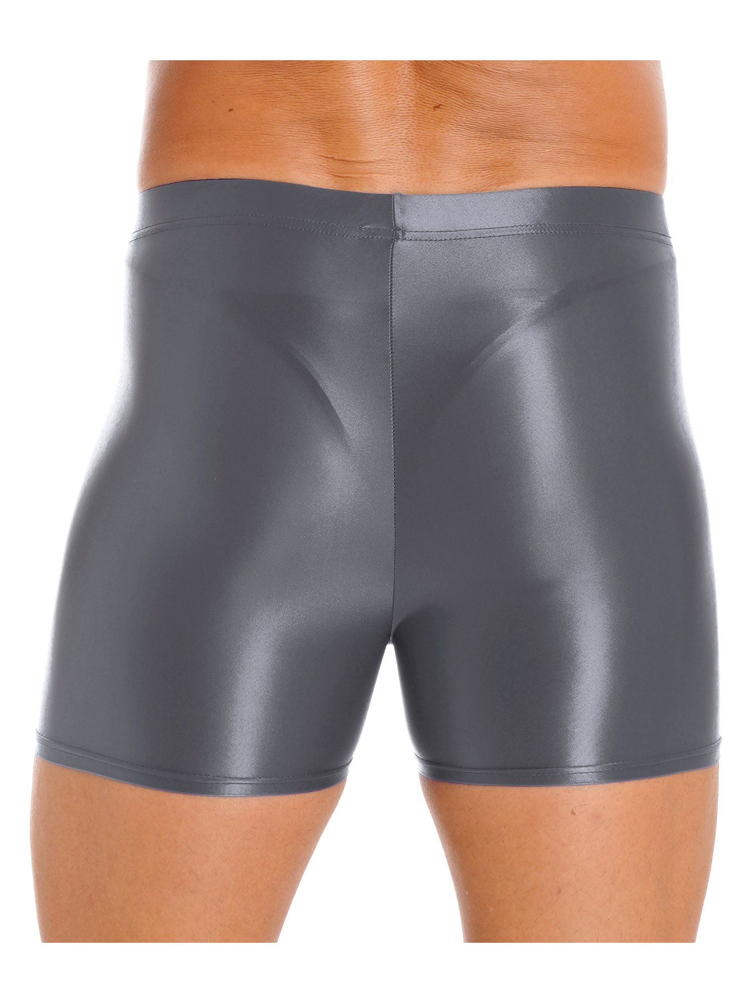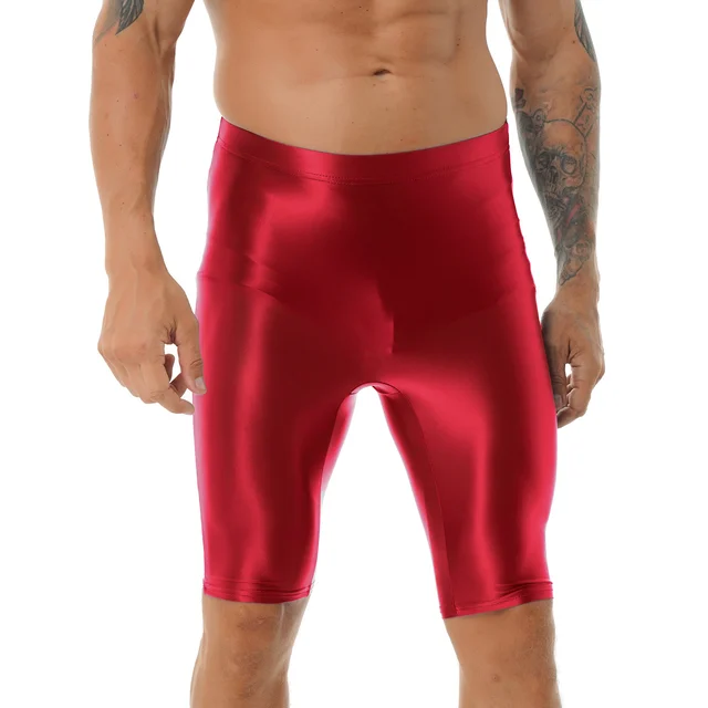 Mens Glossy High Waist Shorts Elastic Waistband Short Leggings Sports Bottoms.