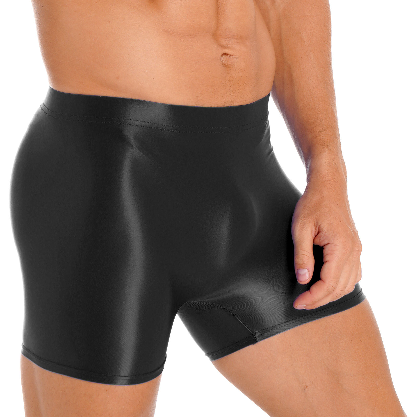 #M-XL Mens Glossy High Waist Shorts Elastic Waistband Short Leggings Swimwear Workout Sports Bottoms