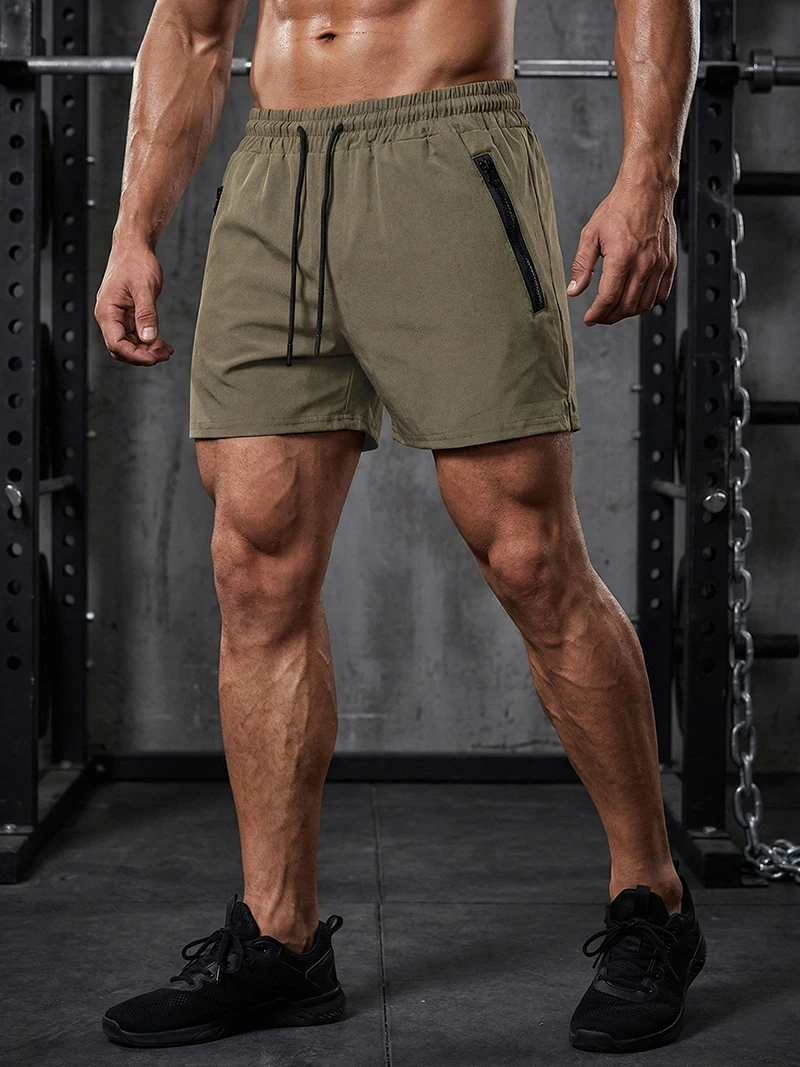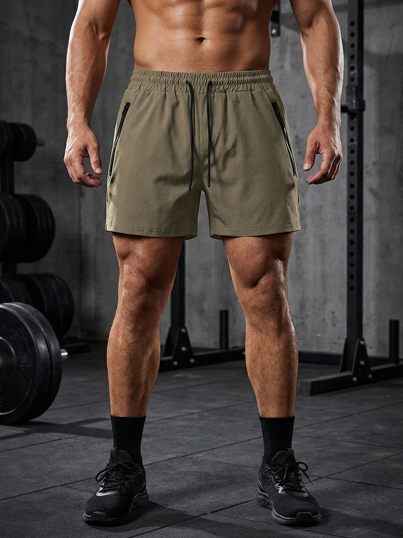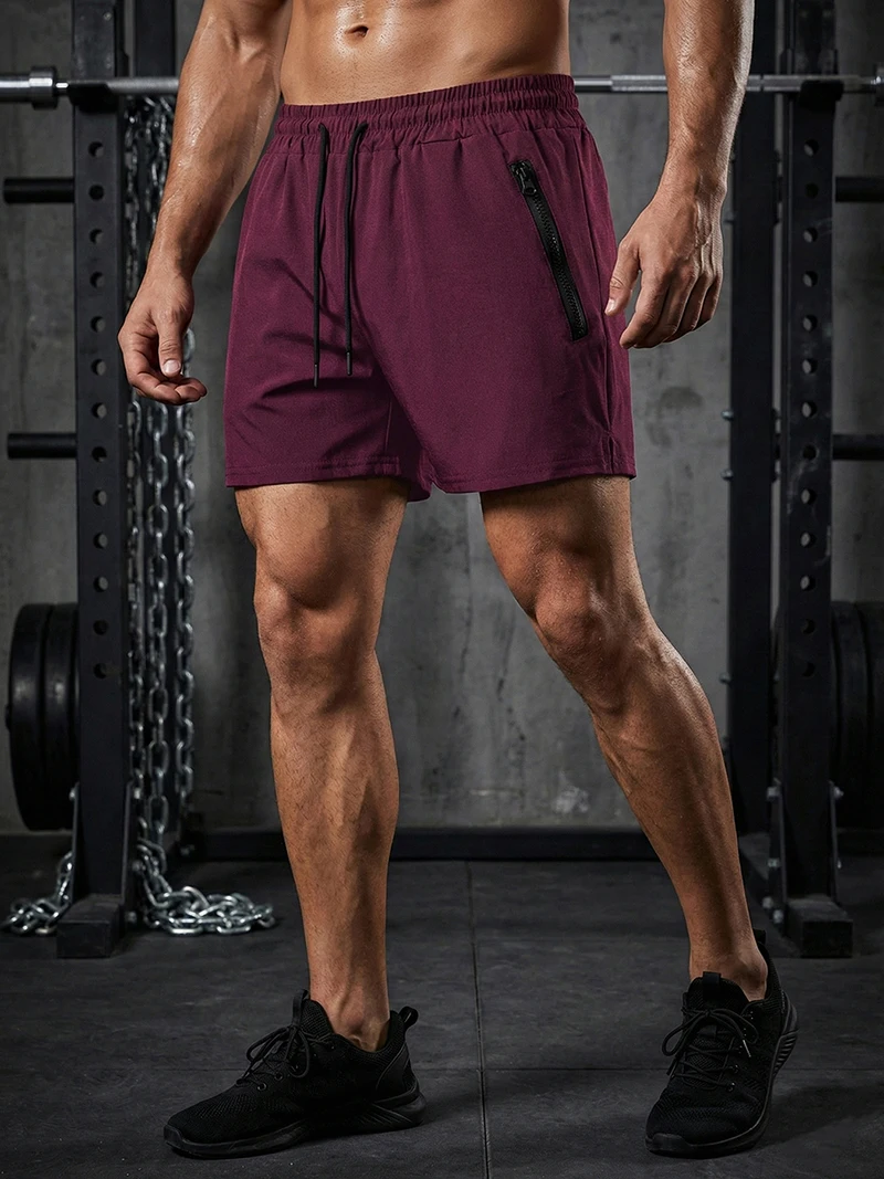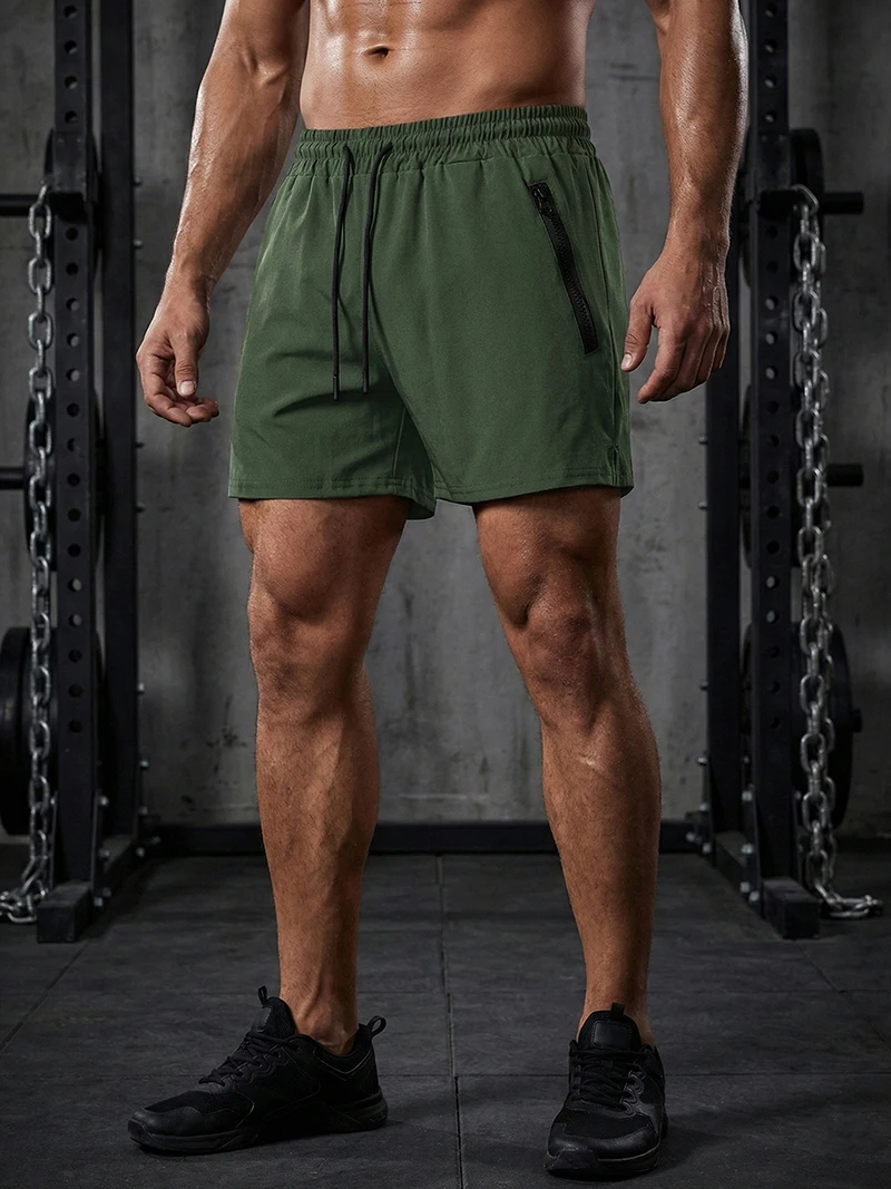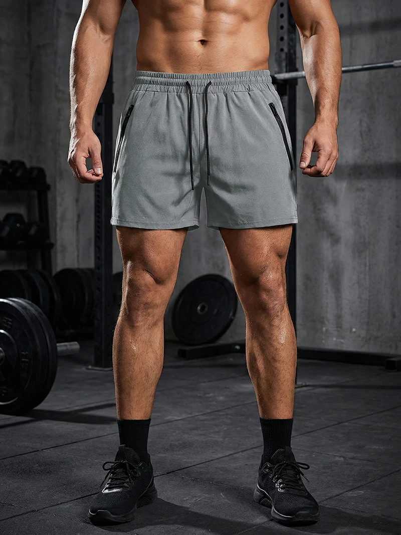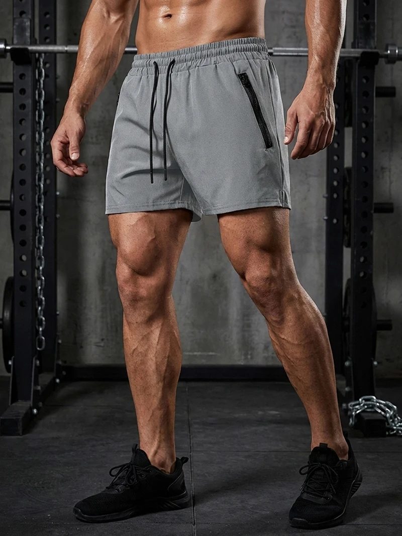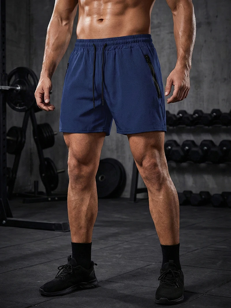 Men’s Gym Workout Running Shorts with Zipper Pockets Mesh Liner Summer Sports Athletic Quick Dry