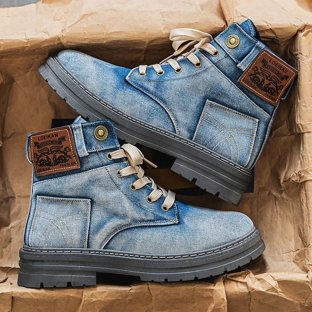 Men’s high top denim boots, casual sports shoes, trendy and fashionable men’s boots