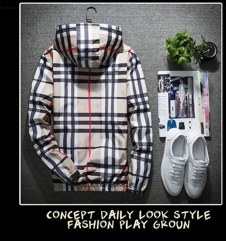 Be the first to review “Men’s Hooded Grid Plaid Jacket Thin Summer Casual Wear Regular Length Outerwear for Spring Autumn”