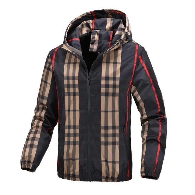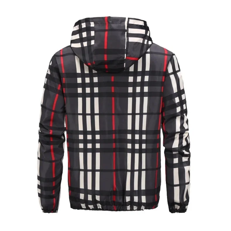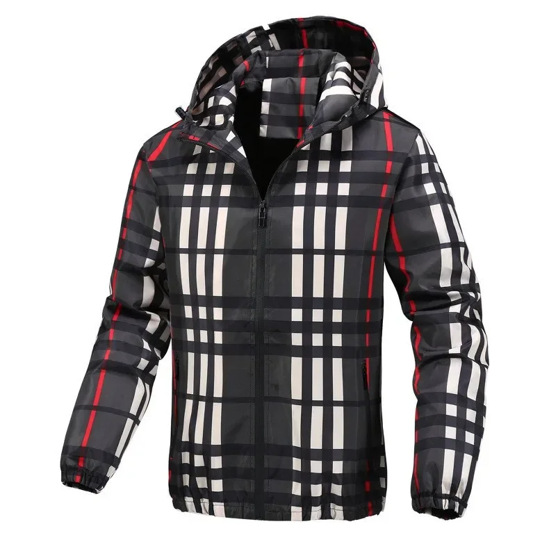 Men's Hooded Grid Plaid Jacket Thin Summer Casual Wear Regular Length Outerwear for Spring Autumn Cross-Border Live Broadcast