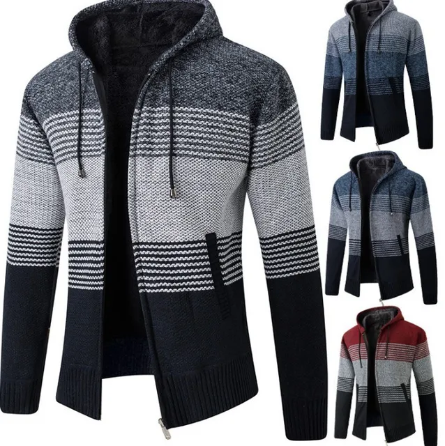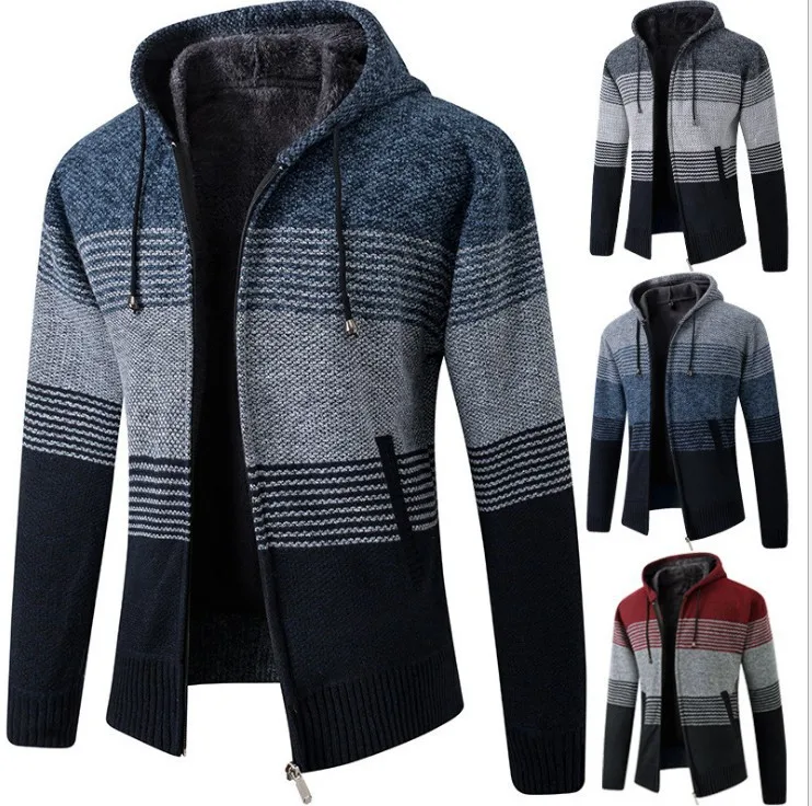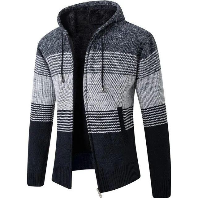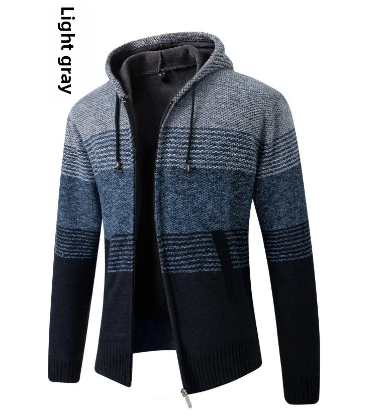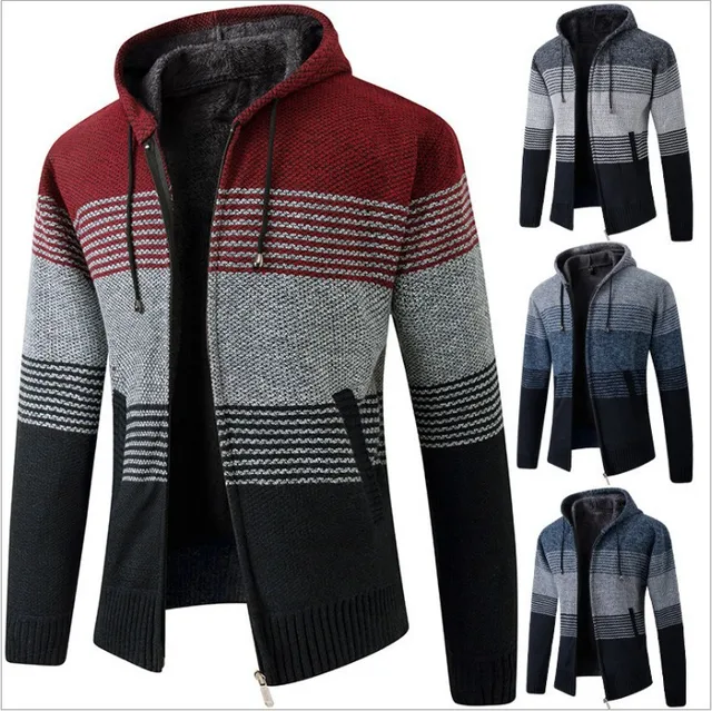 This men’s knit sweater coat features a casual style, perfect for everyday wear. Its straight cut and long sleeves provide a comfortable fit.