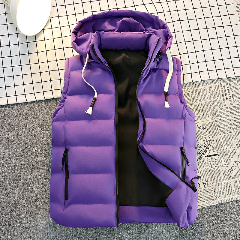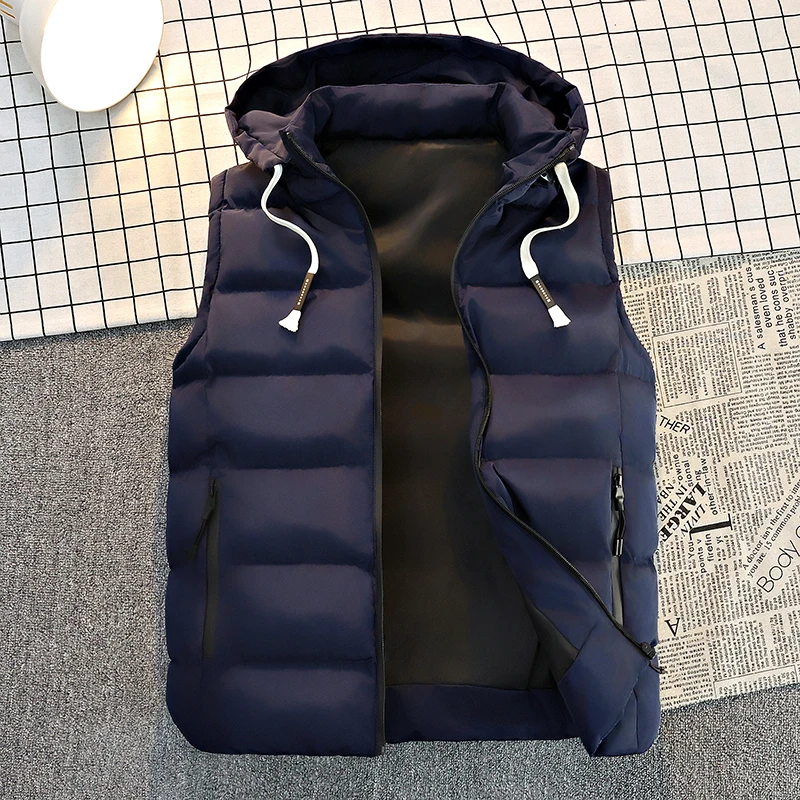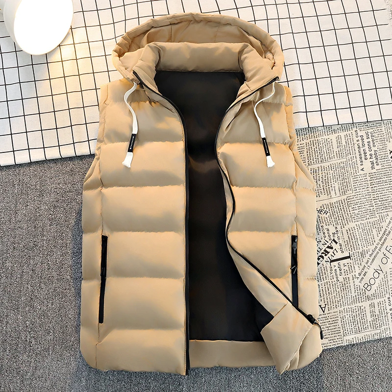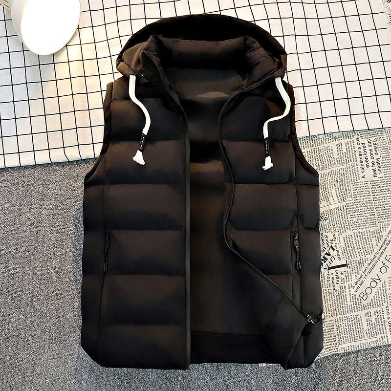 Men’s Hooded Puffer Vest – Zip Closure & Contrast Zip Pockets, Water-Resistant Fabric