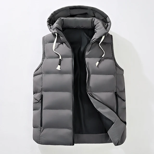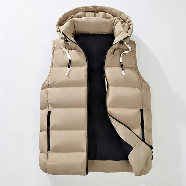 Men’s Hooded Puffer Vest – Zip Closure & Contrast Zip Pockets, Water-Resistant Fabric