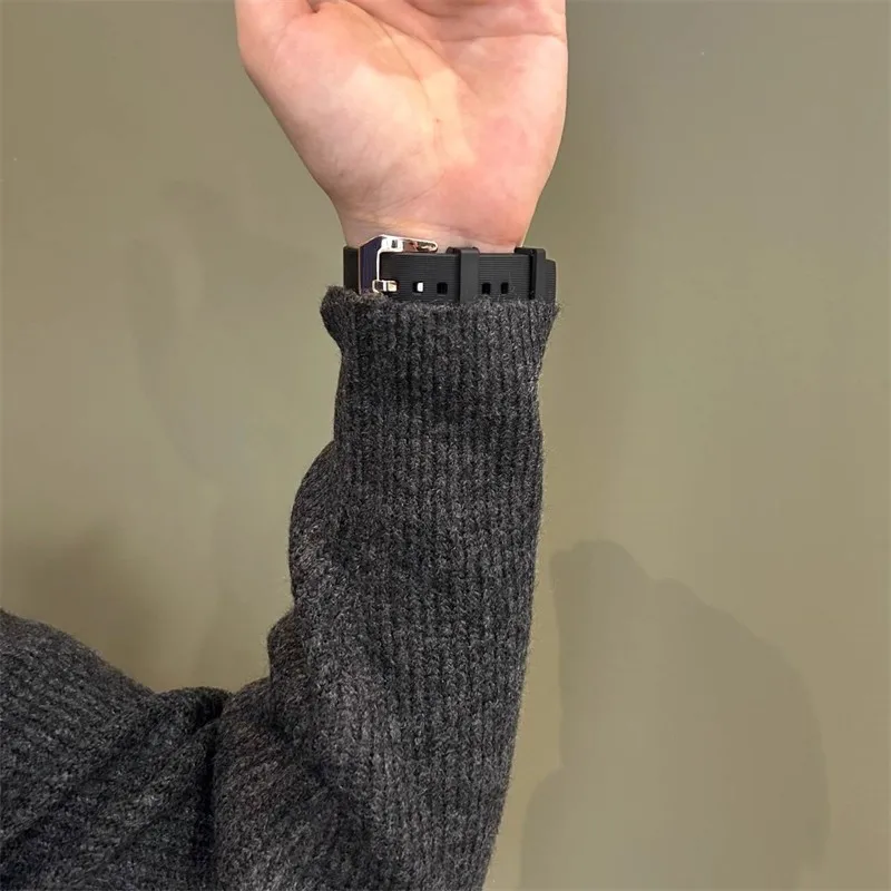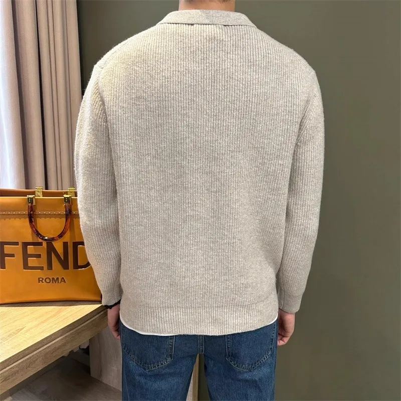 Mens Knit Sweater Autumn Winter Pullover Korean Soft Heavyweight Knit Polo Sweaters Minimalist Long Sleeve
