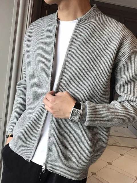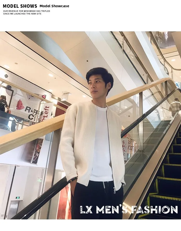 The sweater features a unique double-zipper design, offering versatility and style for the modern man.