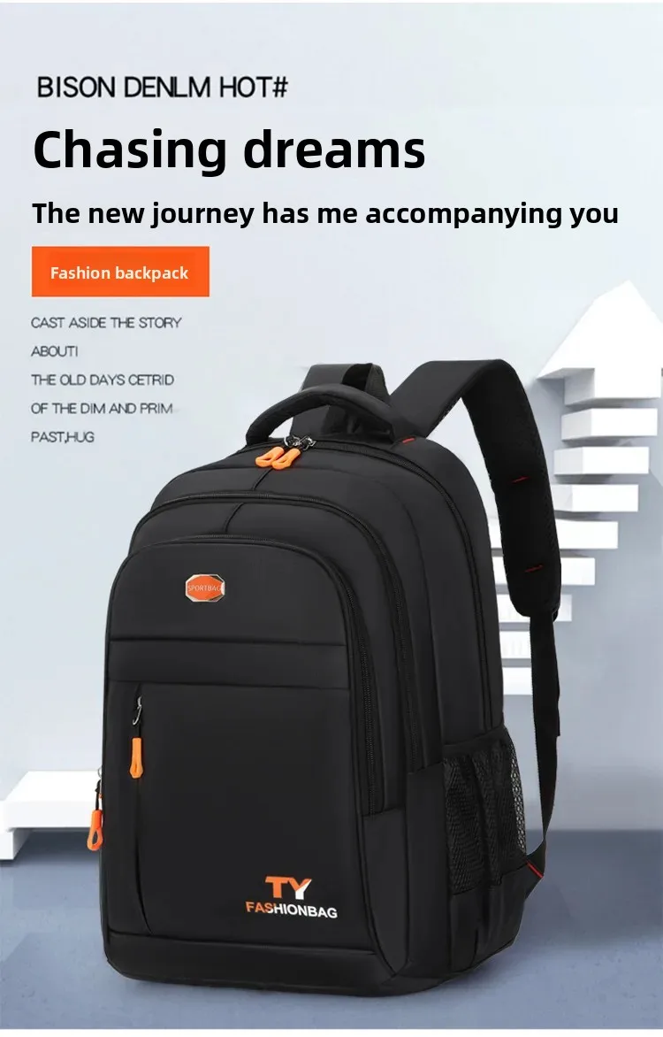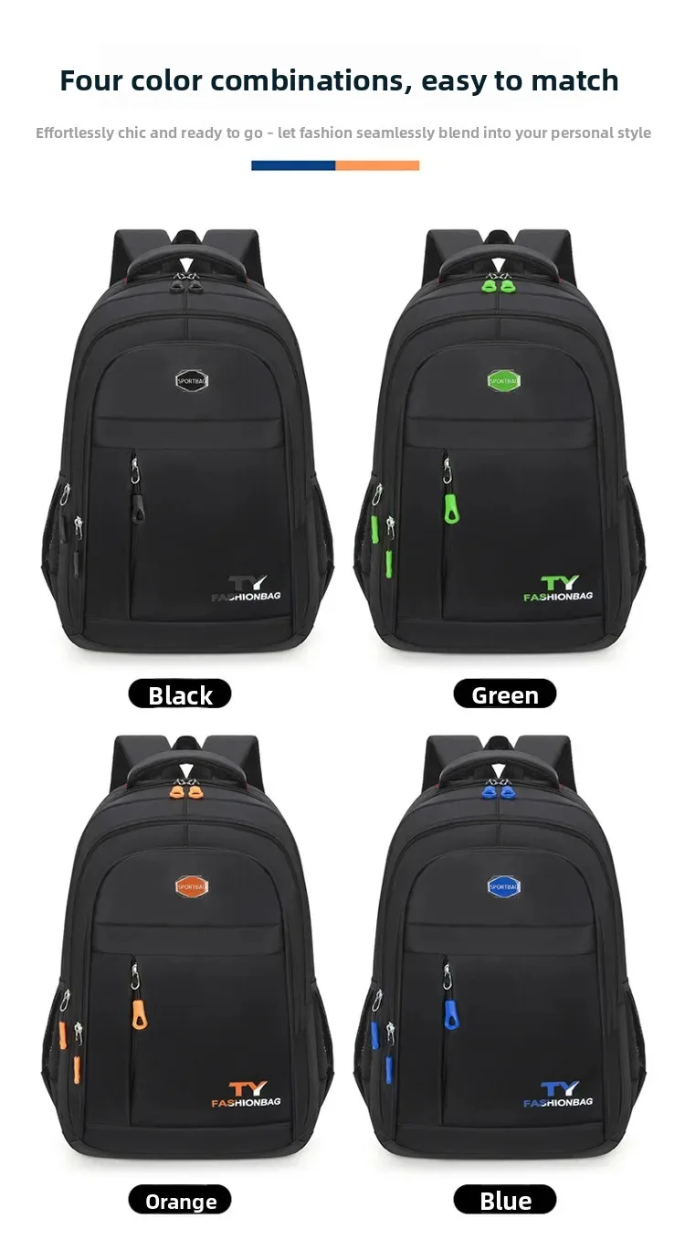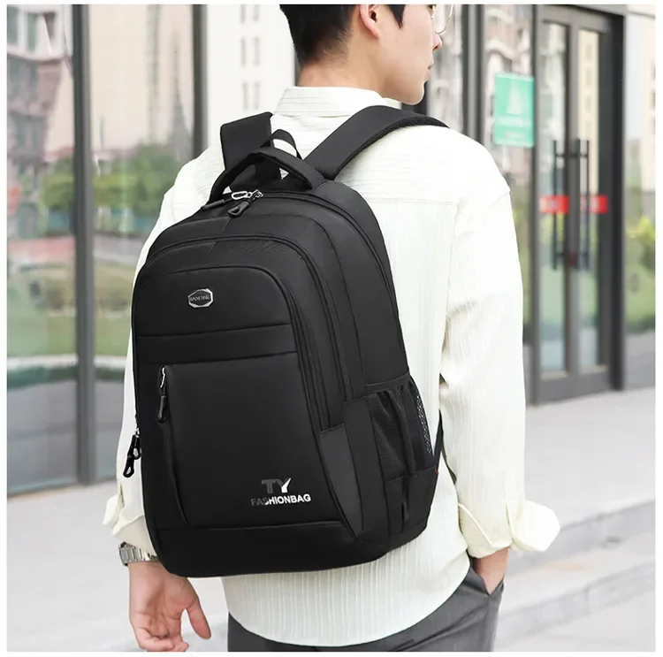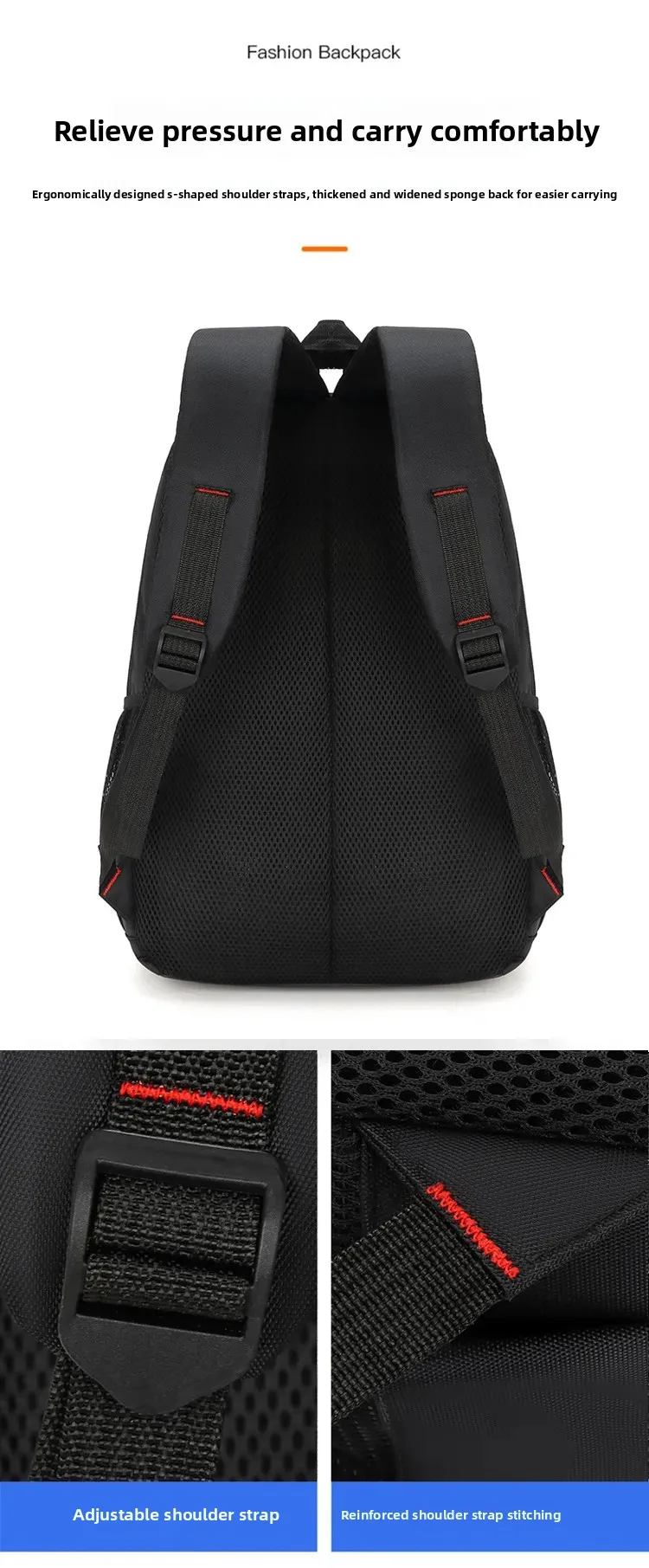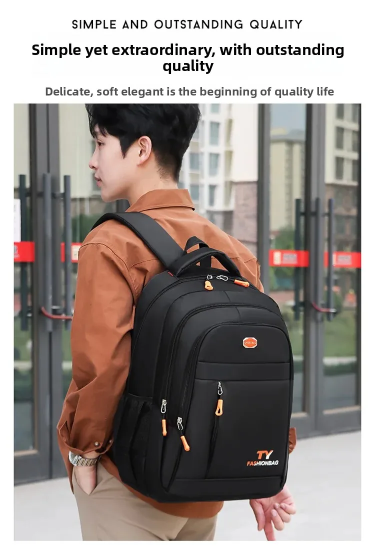 Men's Large Capacity Solid Color Business Travel Bag Fashionable High School Junior High College Student Backpack Oxford Cloth