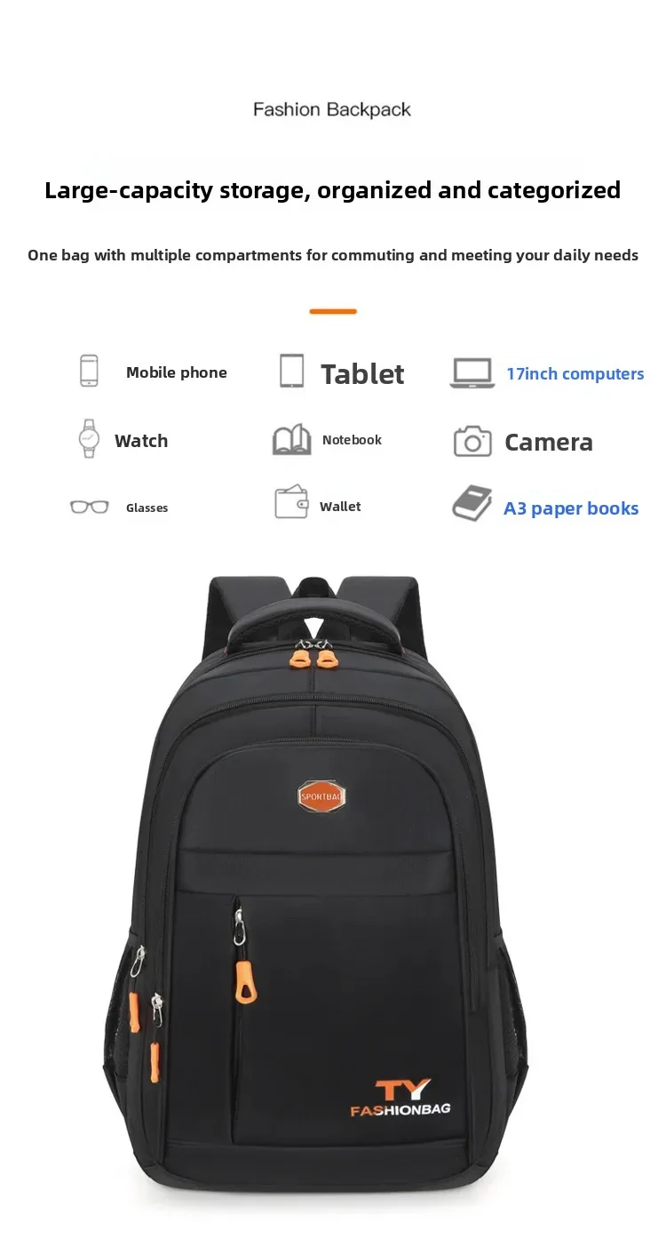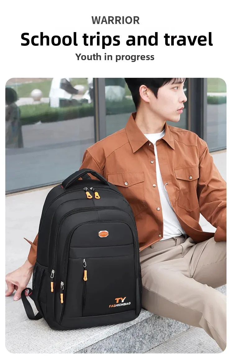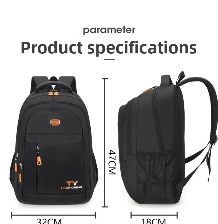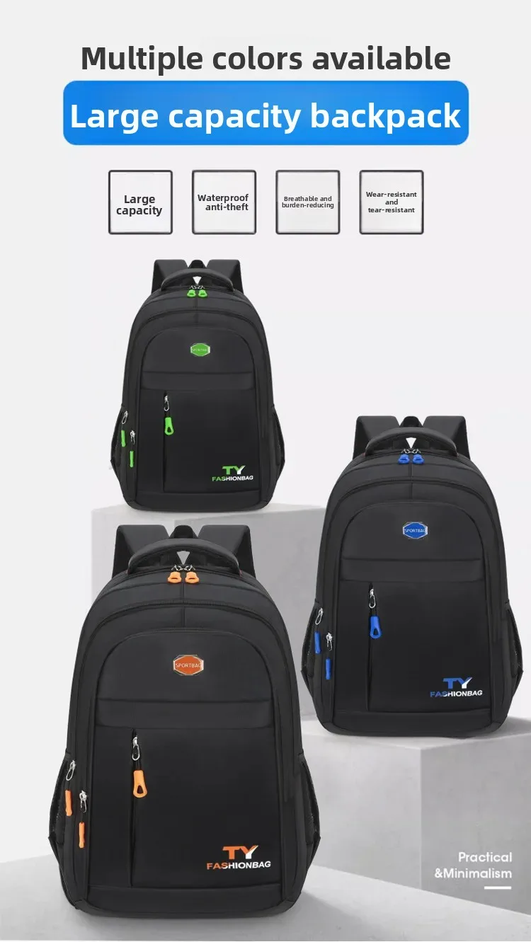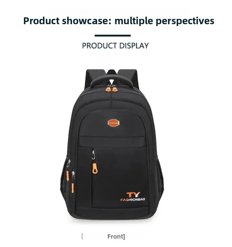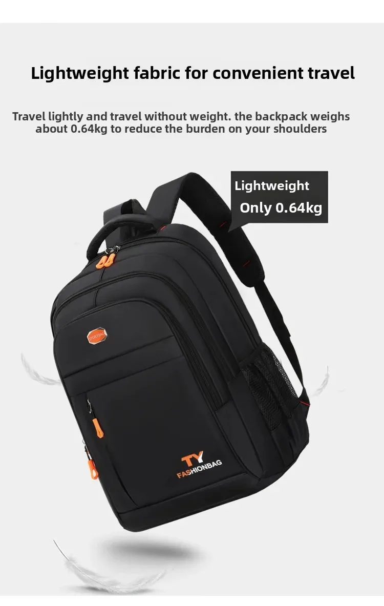 Men's Large Capacity Solid Color Business Travel Bag Fashionable High School Junior High College Student Backpack Oxford Cloth