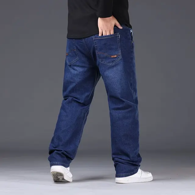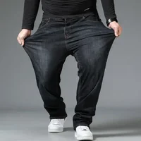 Mens Large Size Black Jeans 10XL Oversize High Waist Loose Trousers Husband Plus Size Loose Denim Trousers Blue Male Denim Pants
