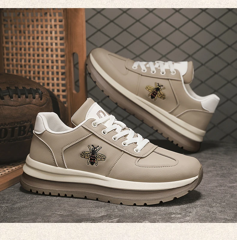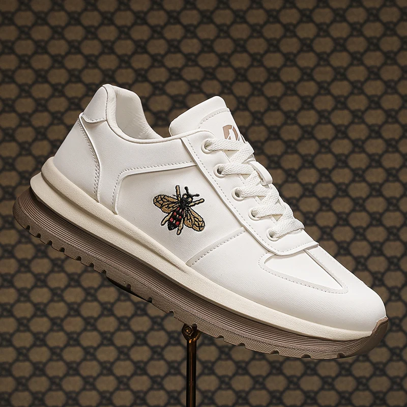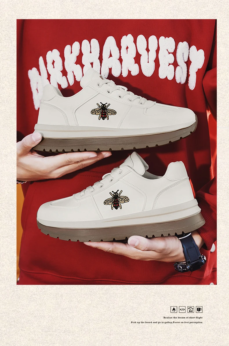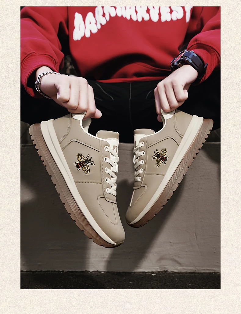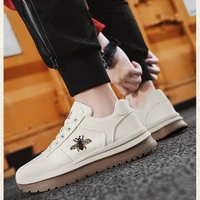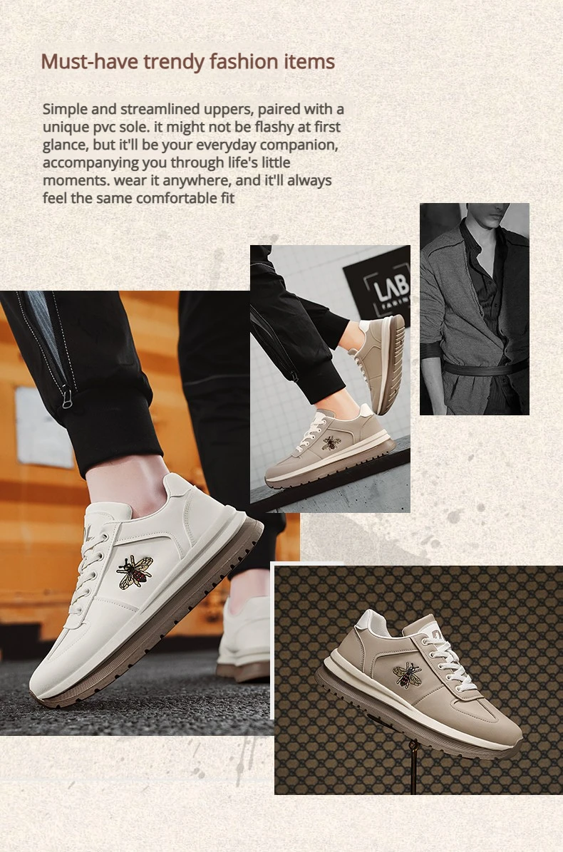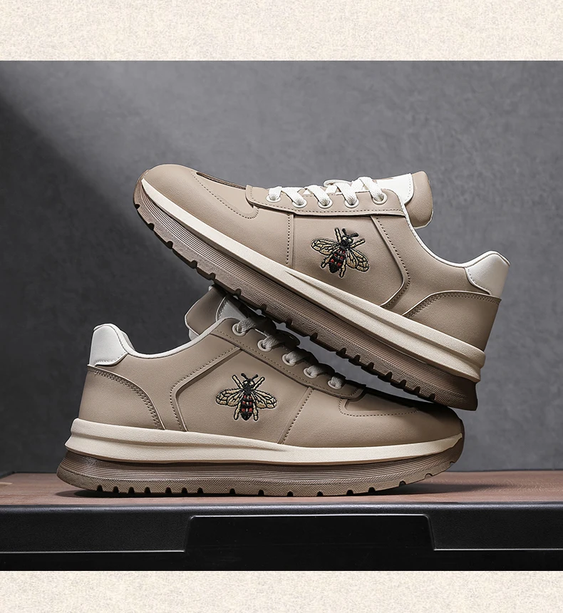 Men's Leather Casual Shoes Low-top Round-toe Large-sized Four-season Style Fashionable Leather Sports Shoes Bee Pattern Design