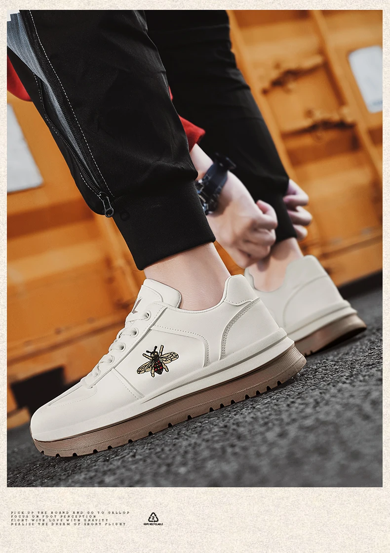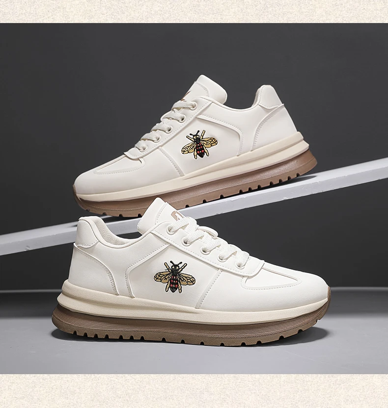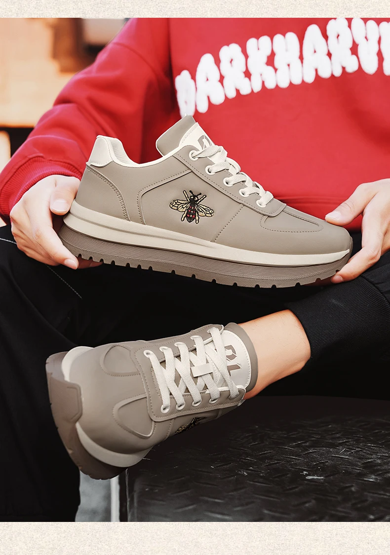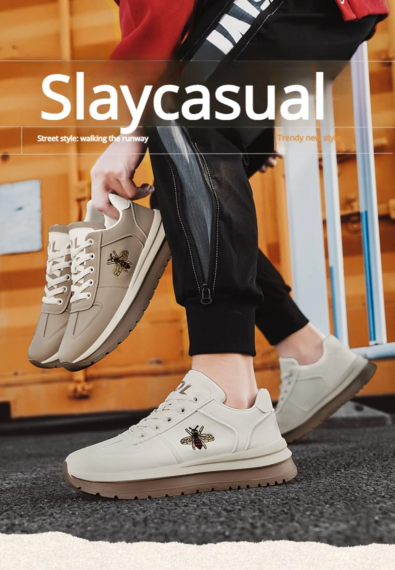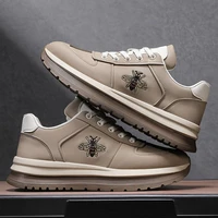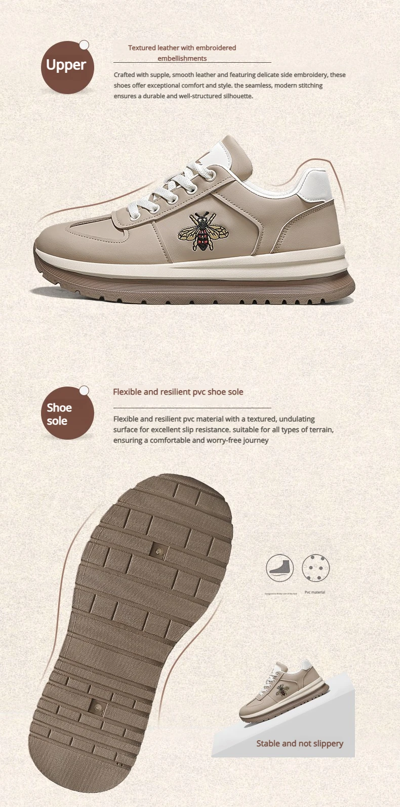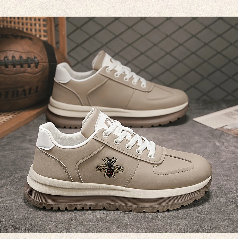 Men's Leather Casual Shoes Low-top Round-toe Large-sized Four-season Style Fashionable Leather Sports Shoes Bee Pattern Design