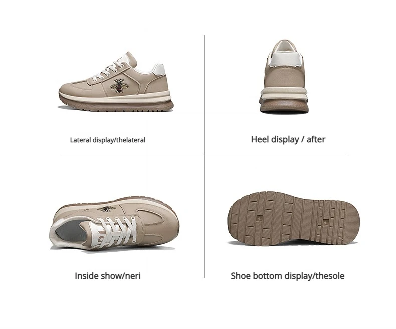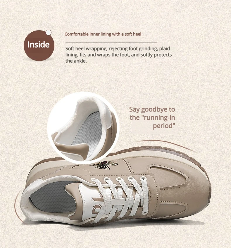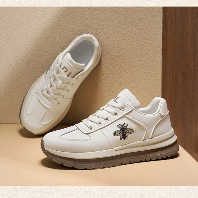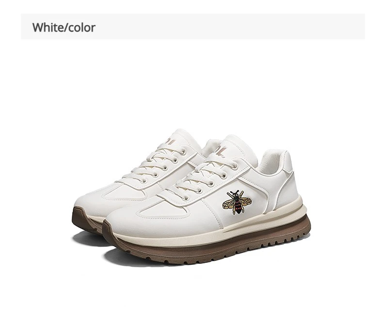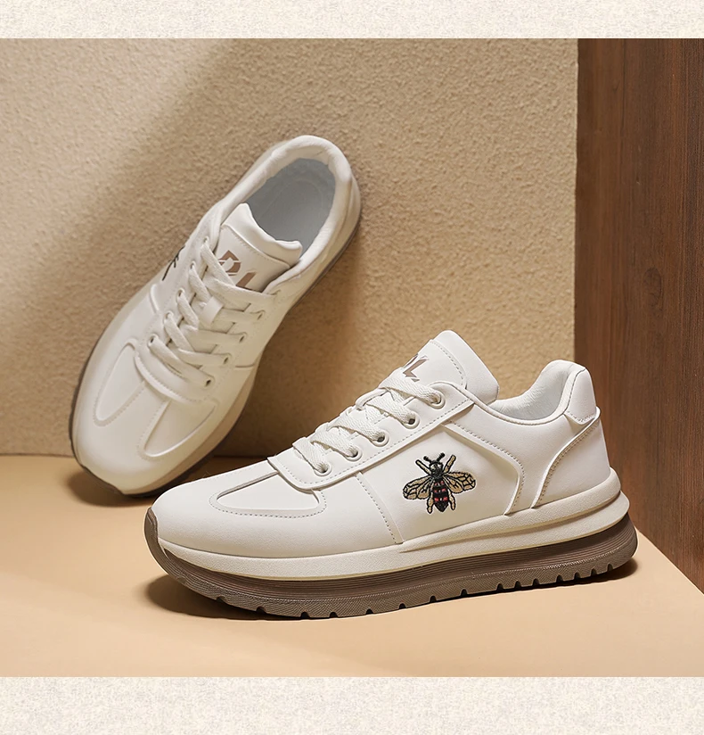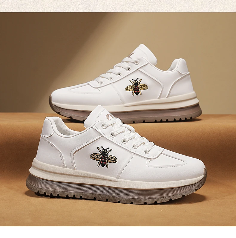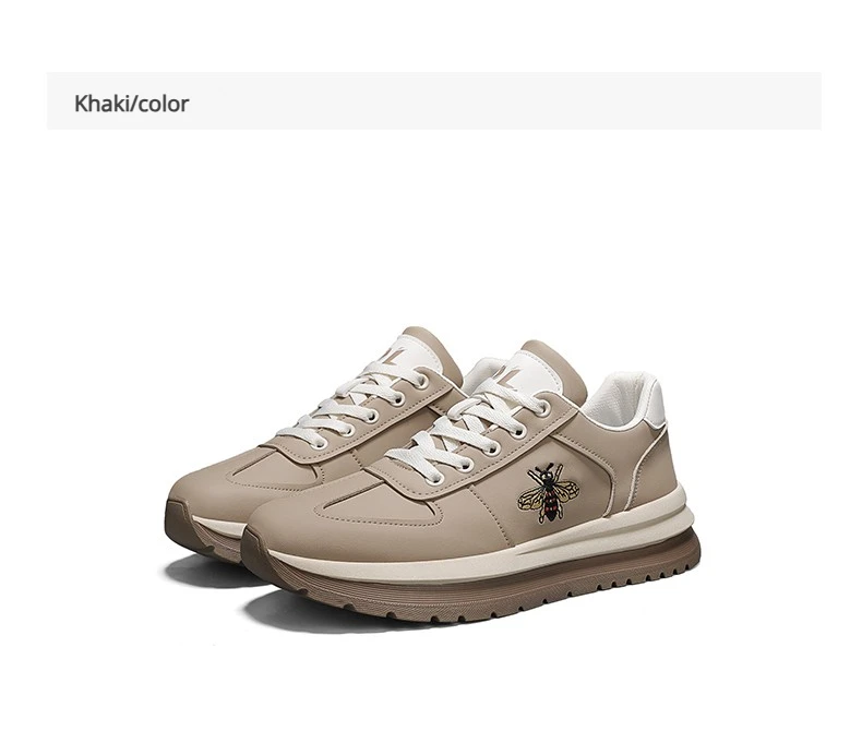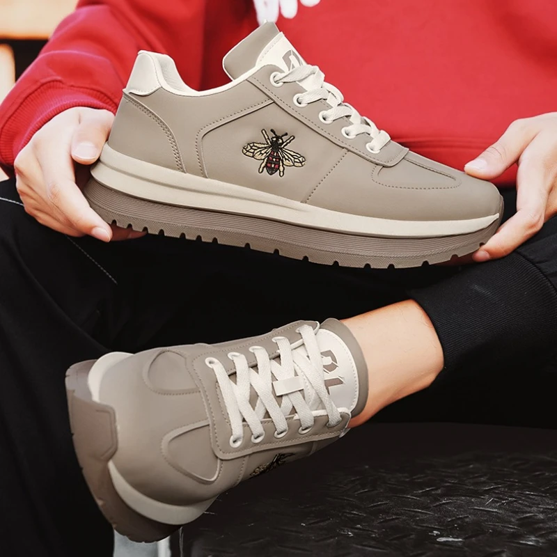 Men's Leather Casual Shoes Low-top Round-toe Large-sized Four-season Style Fashionable Leather Sports Shoes Bee Pattern Design