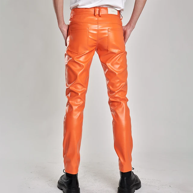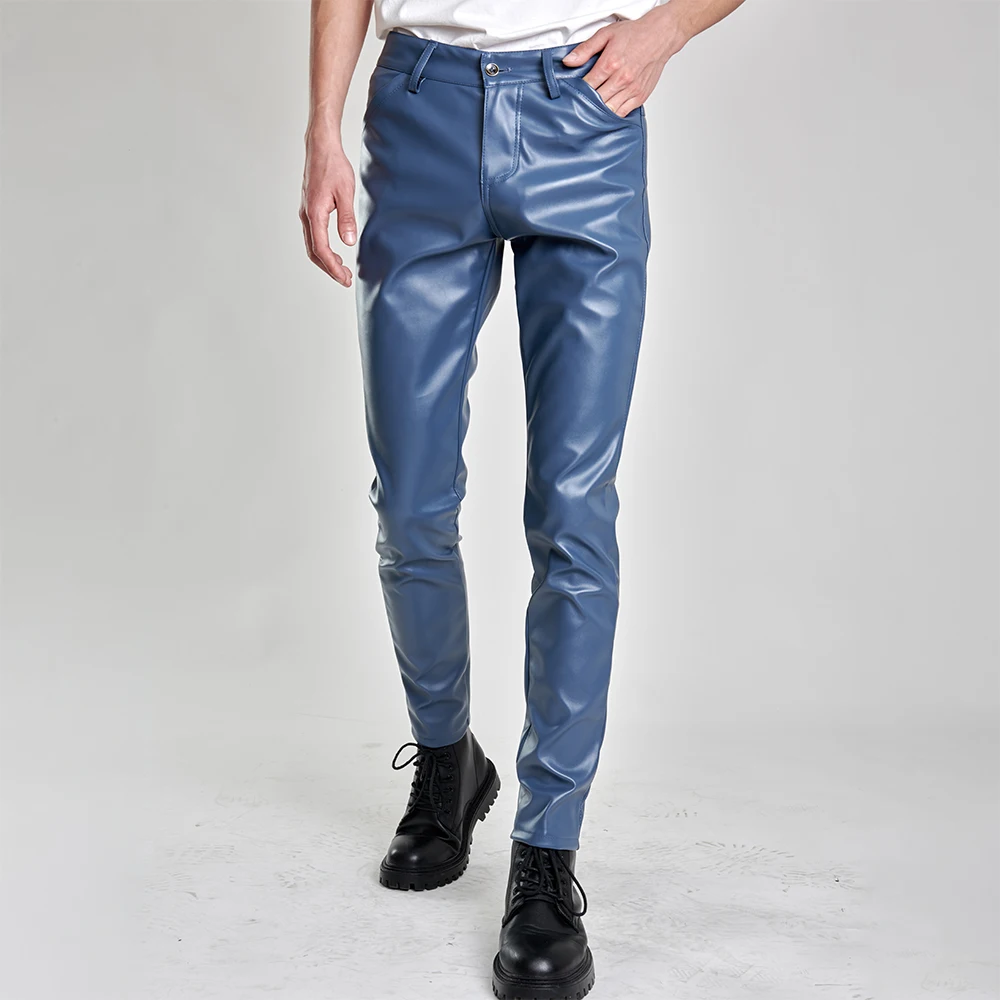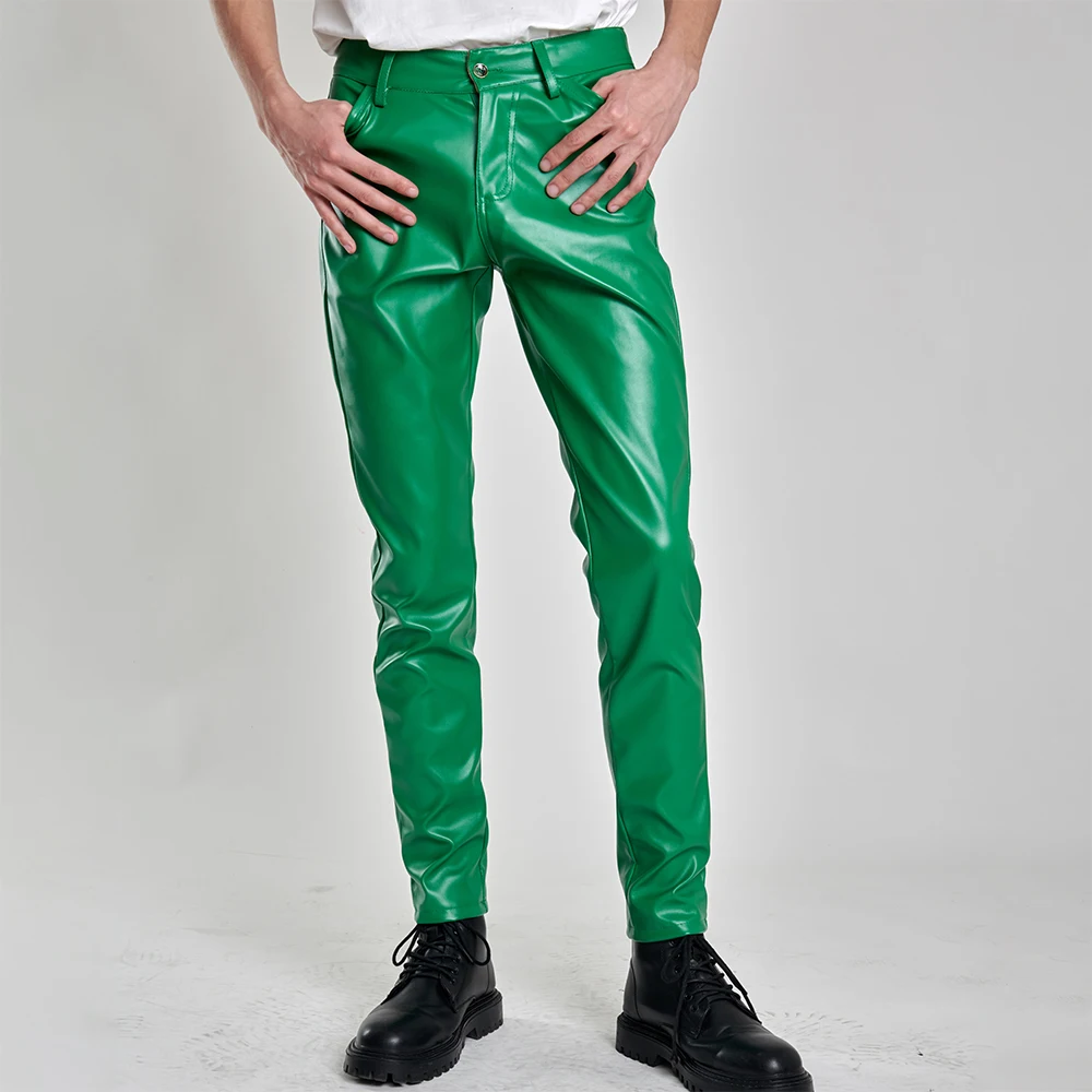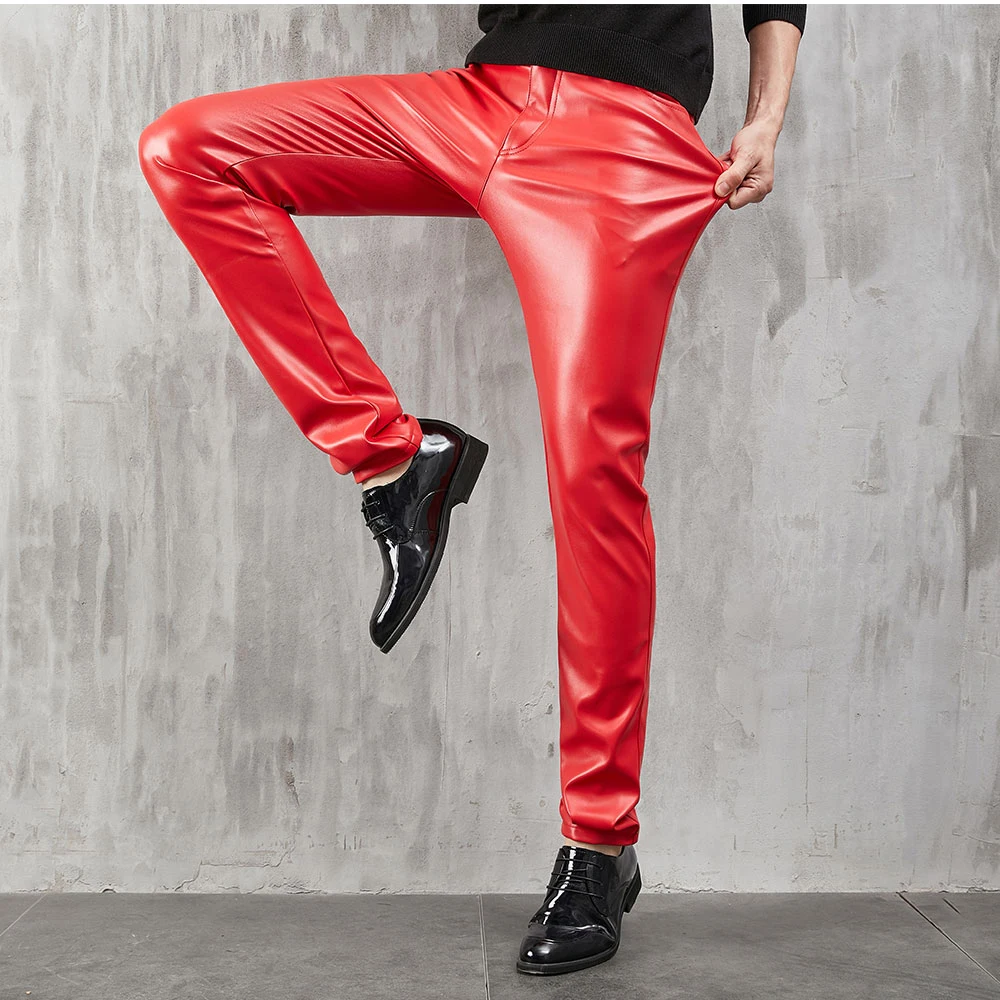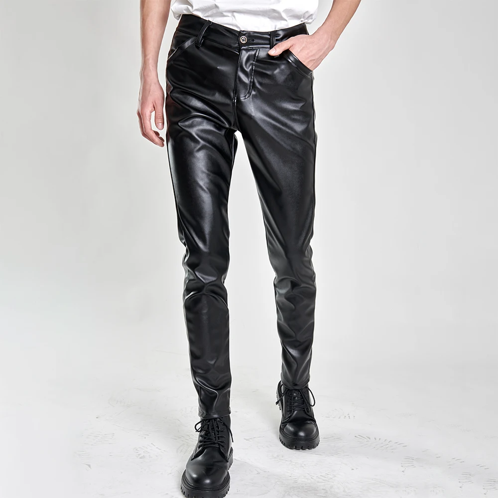 Men’s Leather Pants Skinny Fit Stretch Fashion PU Leather Trousers Nightclub Party & Dance Pants Thin