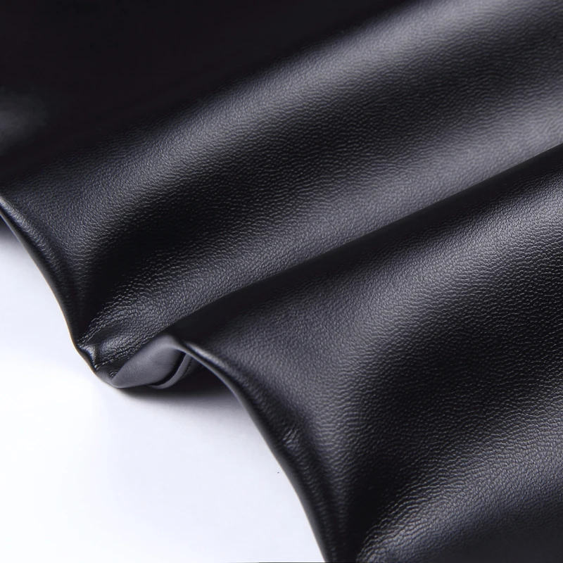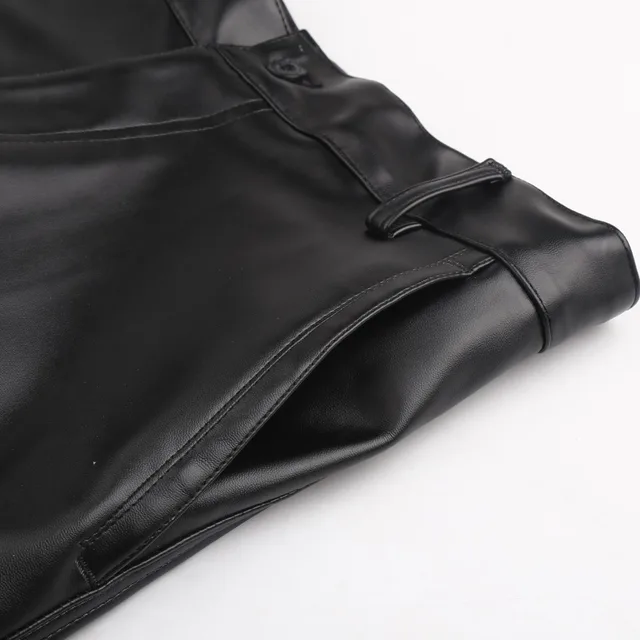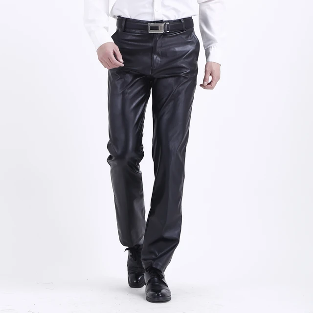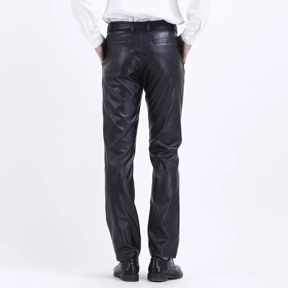 Men’s Leather Pants Straight Fit Elastic PU Leather Trousers Motorcycle Pants Thin
