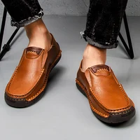 New 2025 Autumn Handmade Leather Casual Men Shoes Design Fashion Sneakers Man Loafers Breathable Low Top Flat Shoes Driving