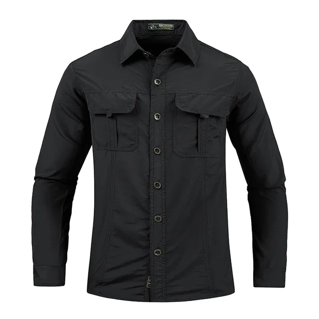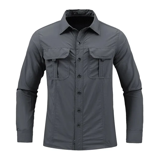 Men’s Lightweight Quick-Drying Shirt Tactical Casual Military Long-Sleeved Cargo Shirt Breathable