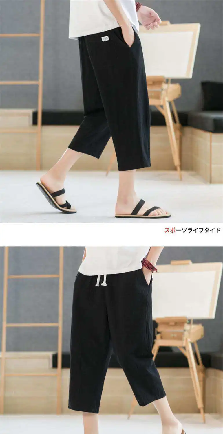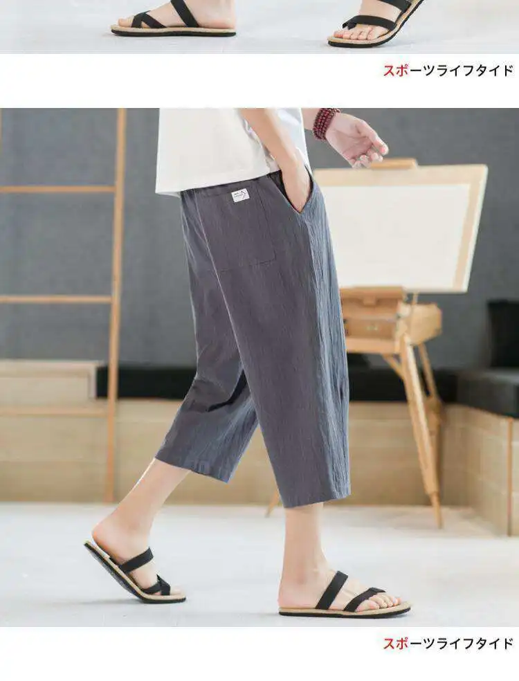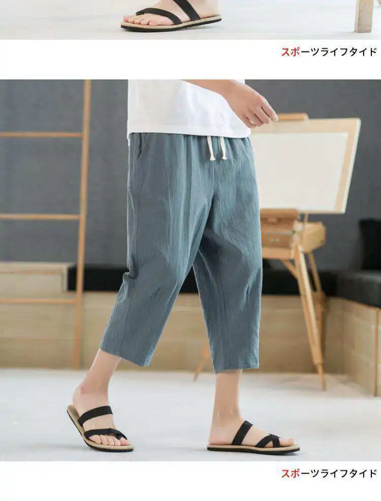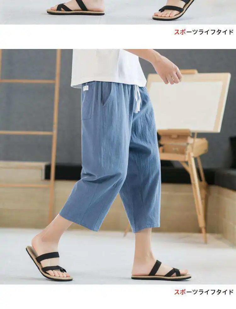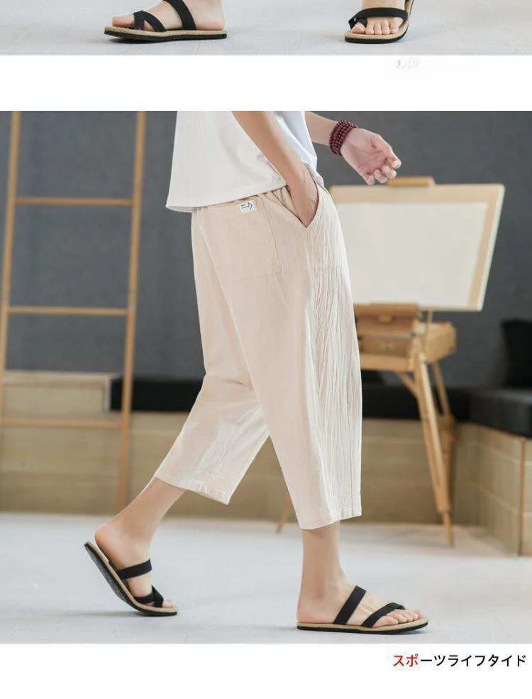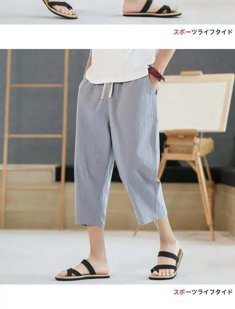 Men's Linen orts Seven-Foot Cotton-Linen Casual Straight Leg Thin Summer Sports Pants Loose Separate Trousers