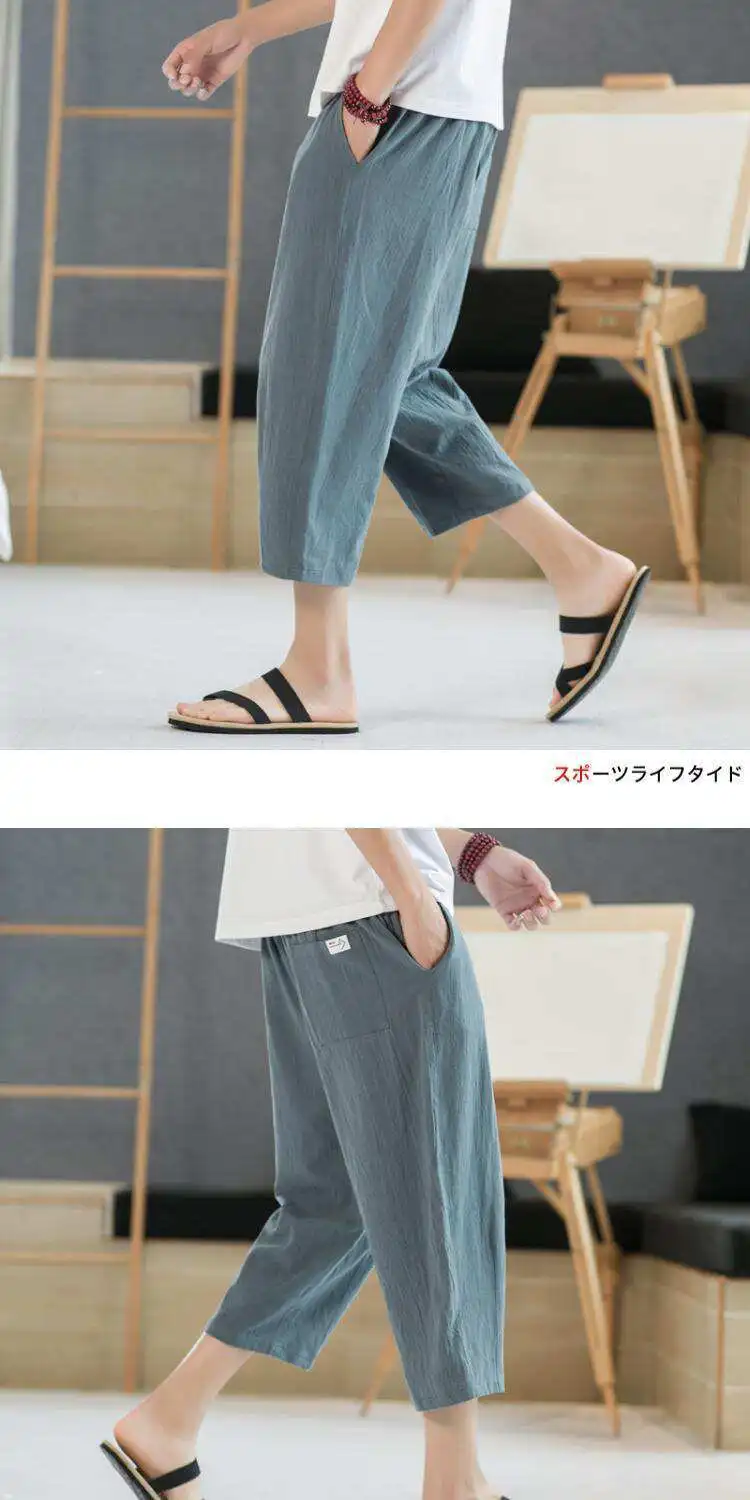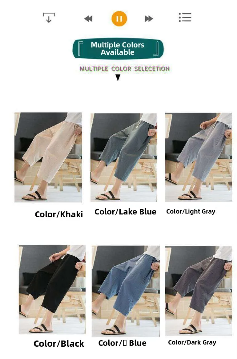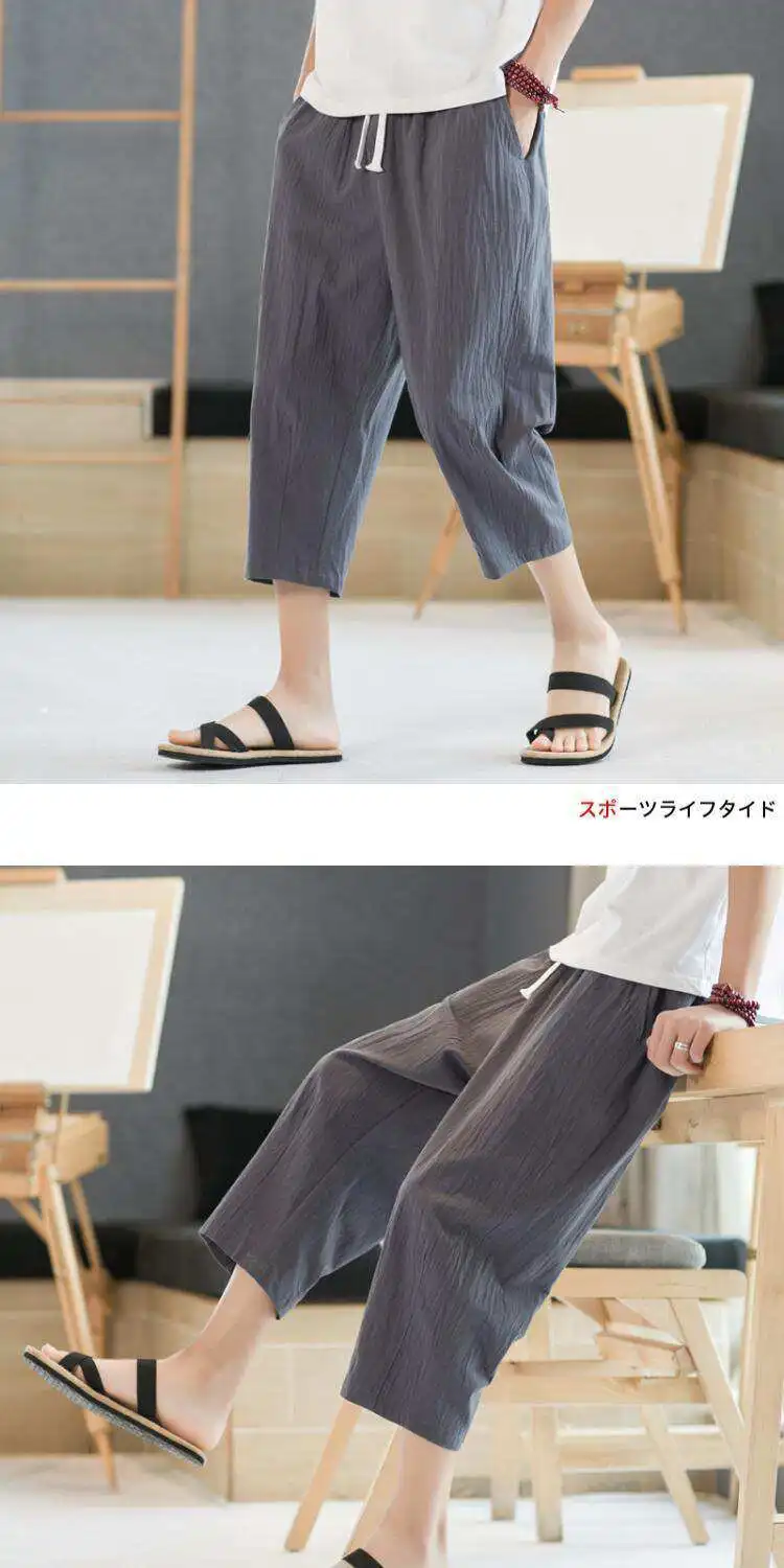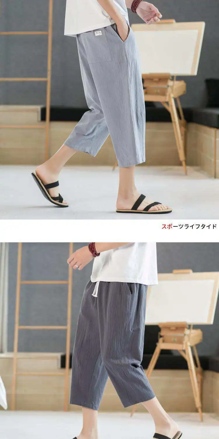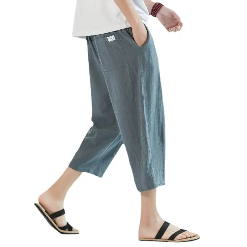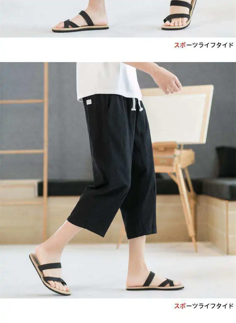 Men's Linen orts Seven-Foot Cotton-Linen Casual Straight Leg Thin Summer Sports Pants Loose Separate Trousers