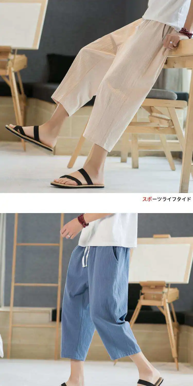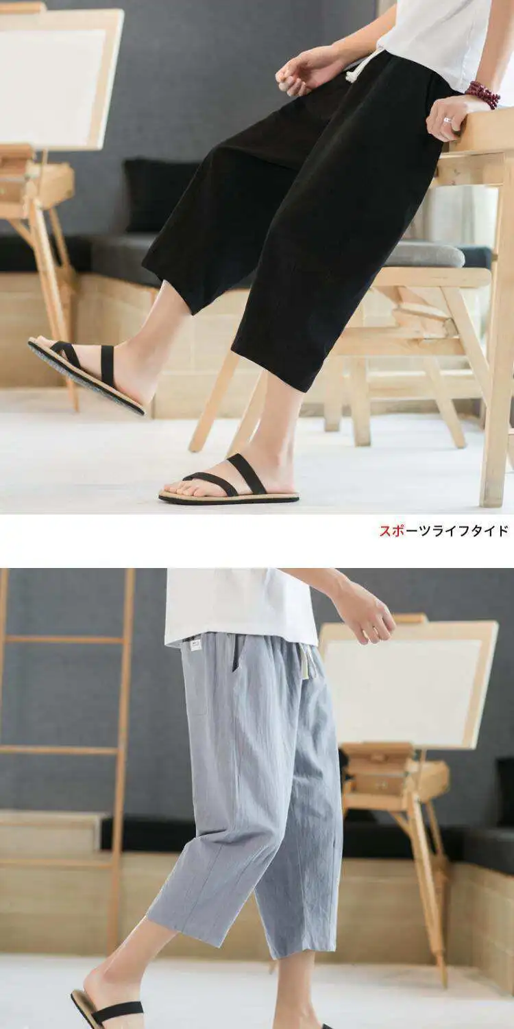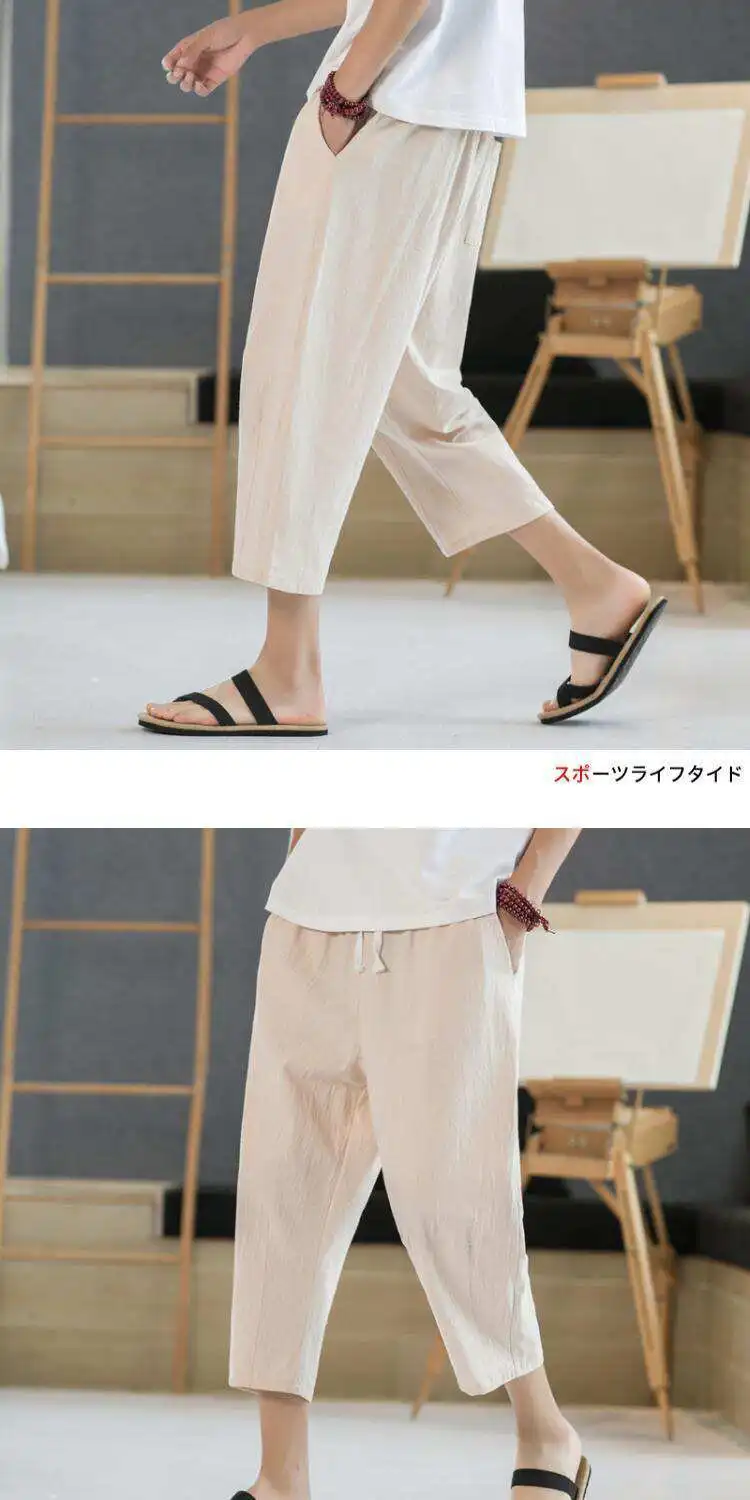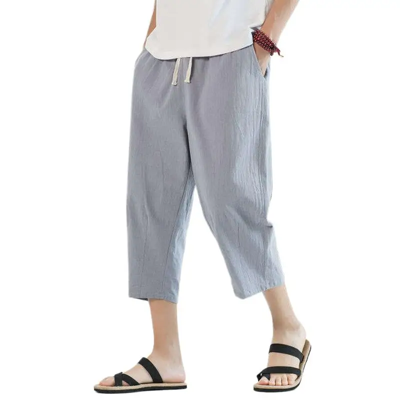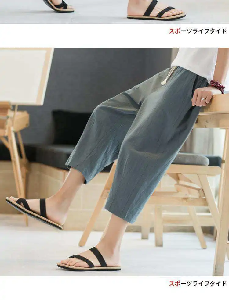 Men's Linen orts Seven-Foot Cotton-Linen Casual Straight Leg Thin Summer Sports Pants Loose Separate Trousers