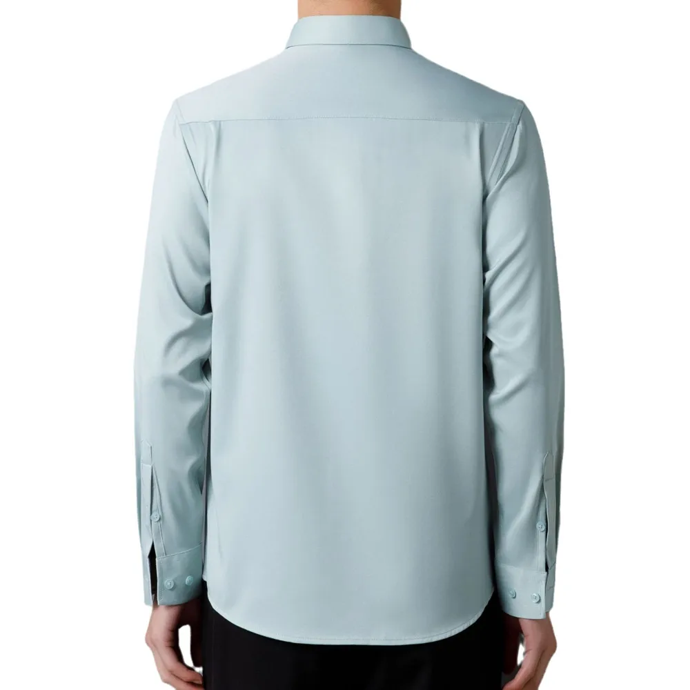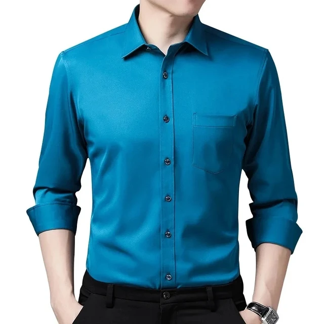 Luxury Men's Social Dress Shirts Spring Autumn Smooth Soft Wrinkle-resistant Non-iron Solid Color Casual Ice Silk Stain Wedding