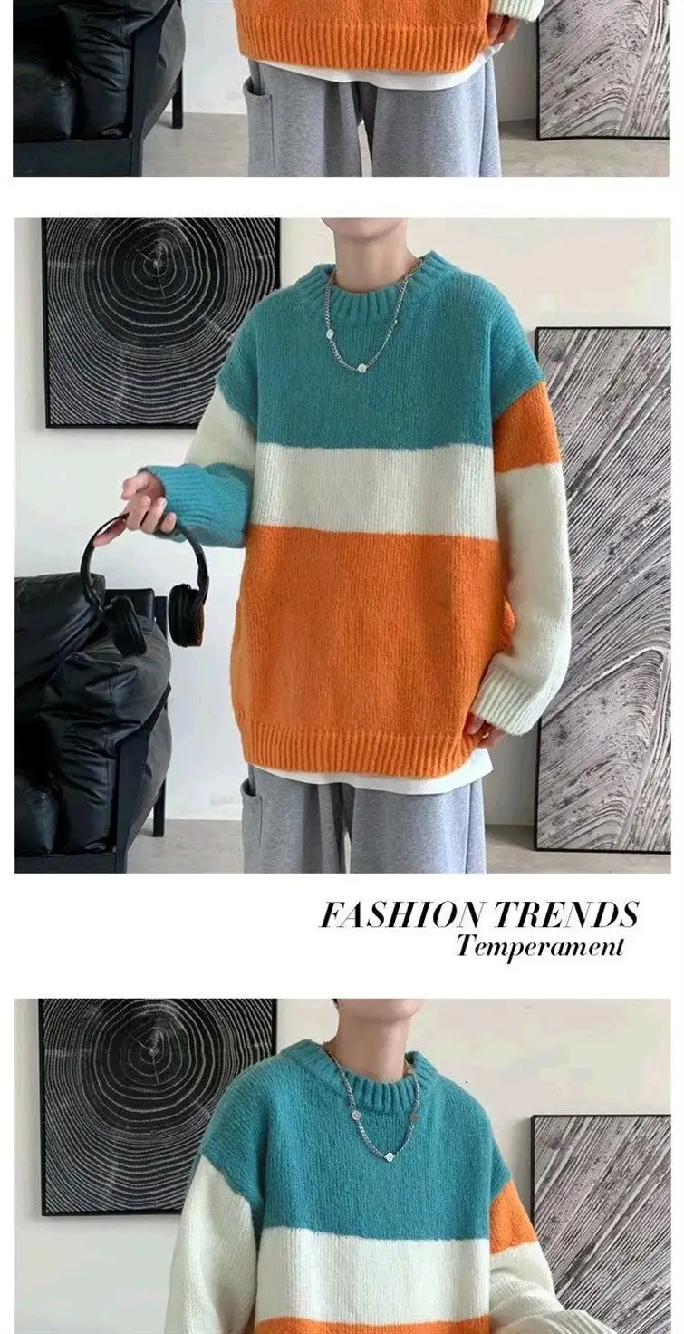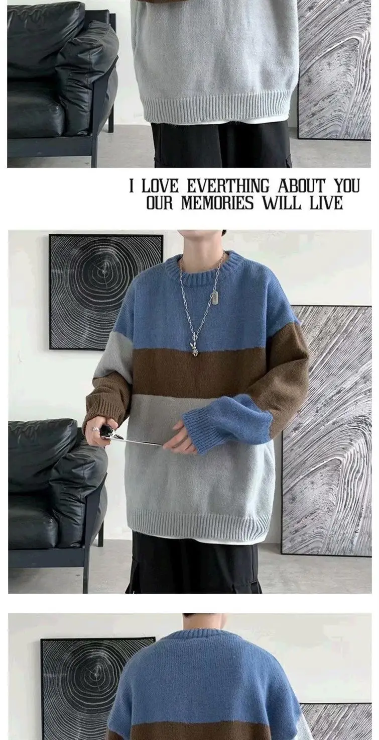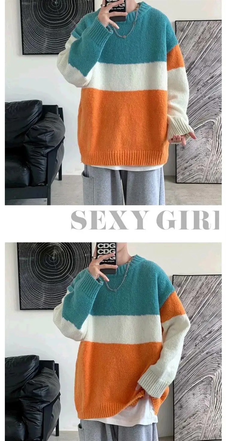 This men’s sweater features a unique Japanese retro striped design, adding a touch of vintage charm to your wardrobe.