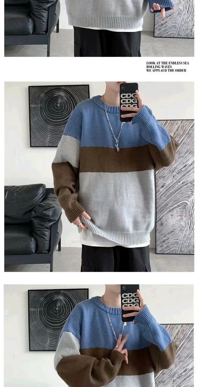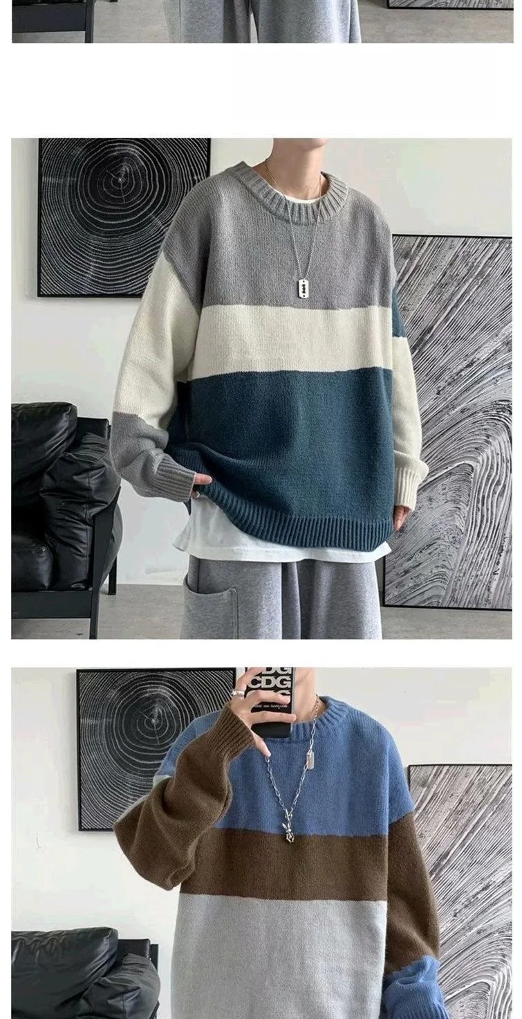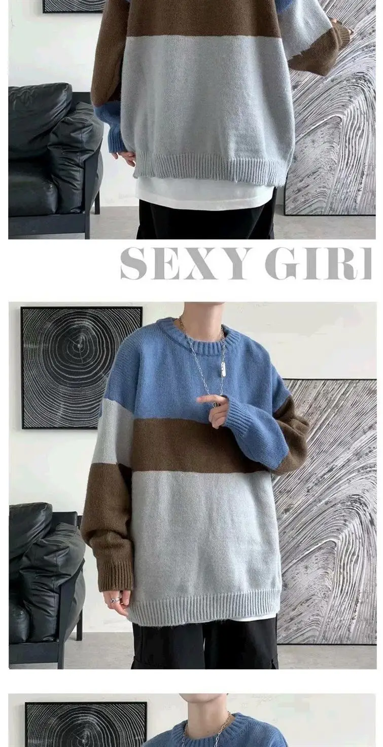 This men’s sweater features a unique Japanese retro striped design, adding a touch of vintage charm to your wardrobe.