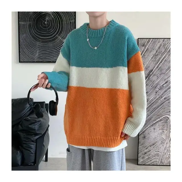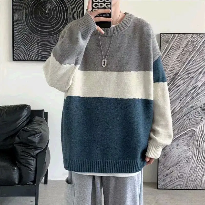 This men’s sweater features a unique Japanese retro striped design, adding a touch of vintage charm to your wardrobe.
