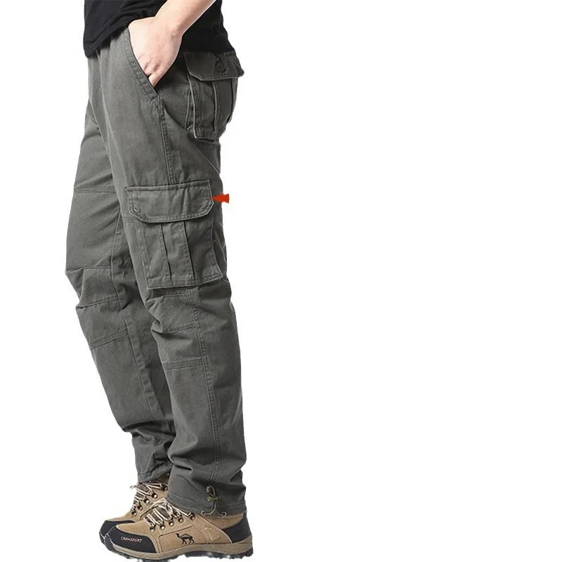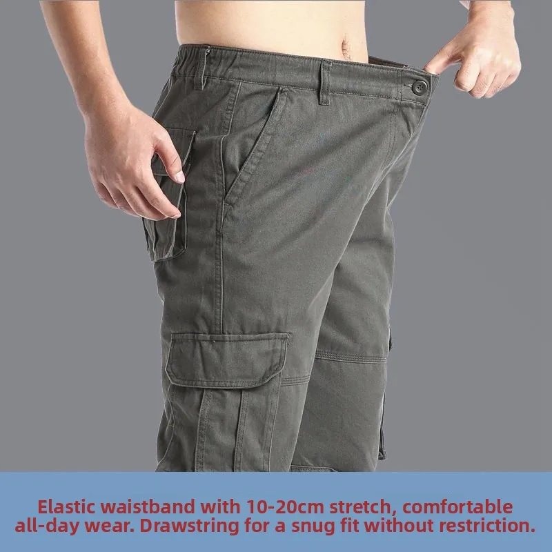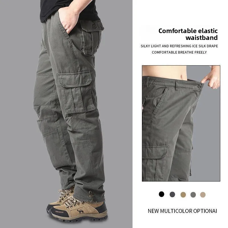 Men’s Loose Straight Leg Cotton Work Trousers Outdoor Casual Long Pants Large Size Comfortable