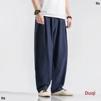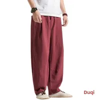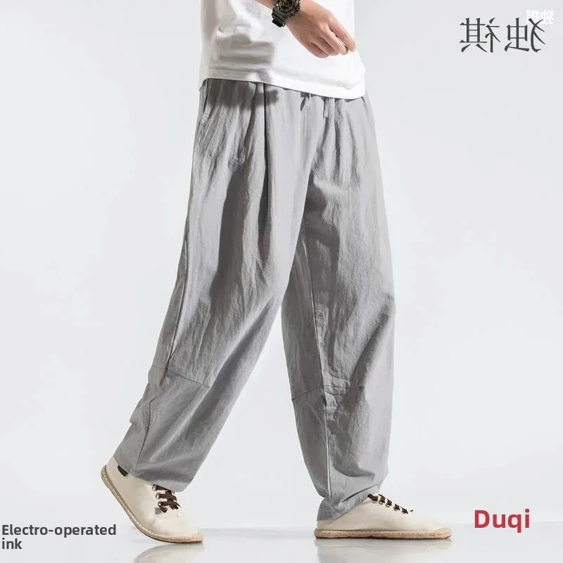 Men's Loose Wide Leg Pants Draped Linen Loose Fit Casual Trousers Chinese Style Spring Summer Cotton Linen Lantern Pants