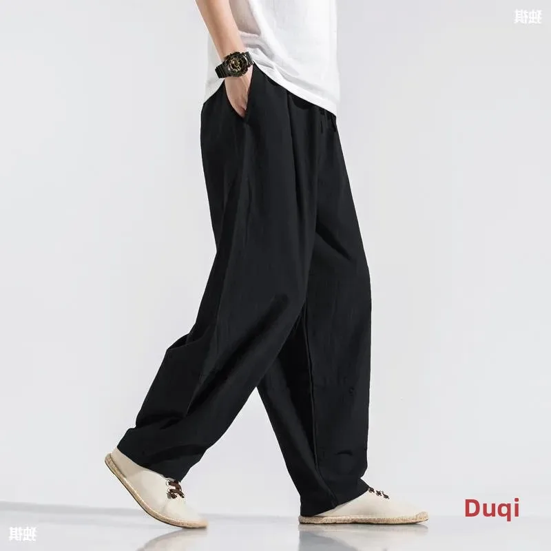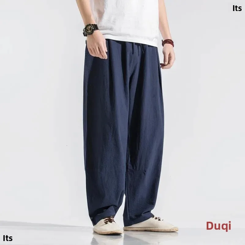 Men’s Loose Wide Leg Pants Draped Linen Loose Fit Casual Trousers Chinese Style Spring Summer Cotton