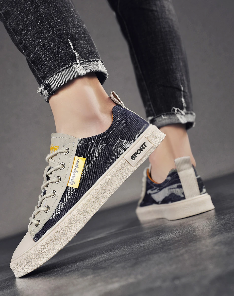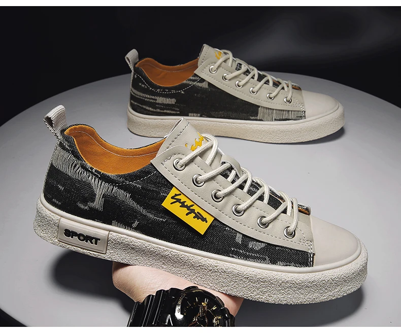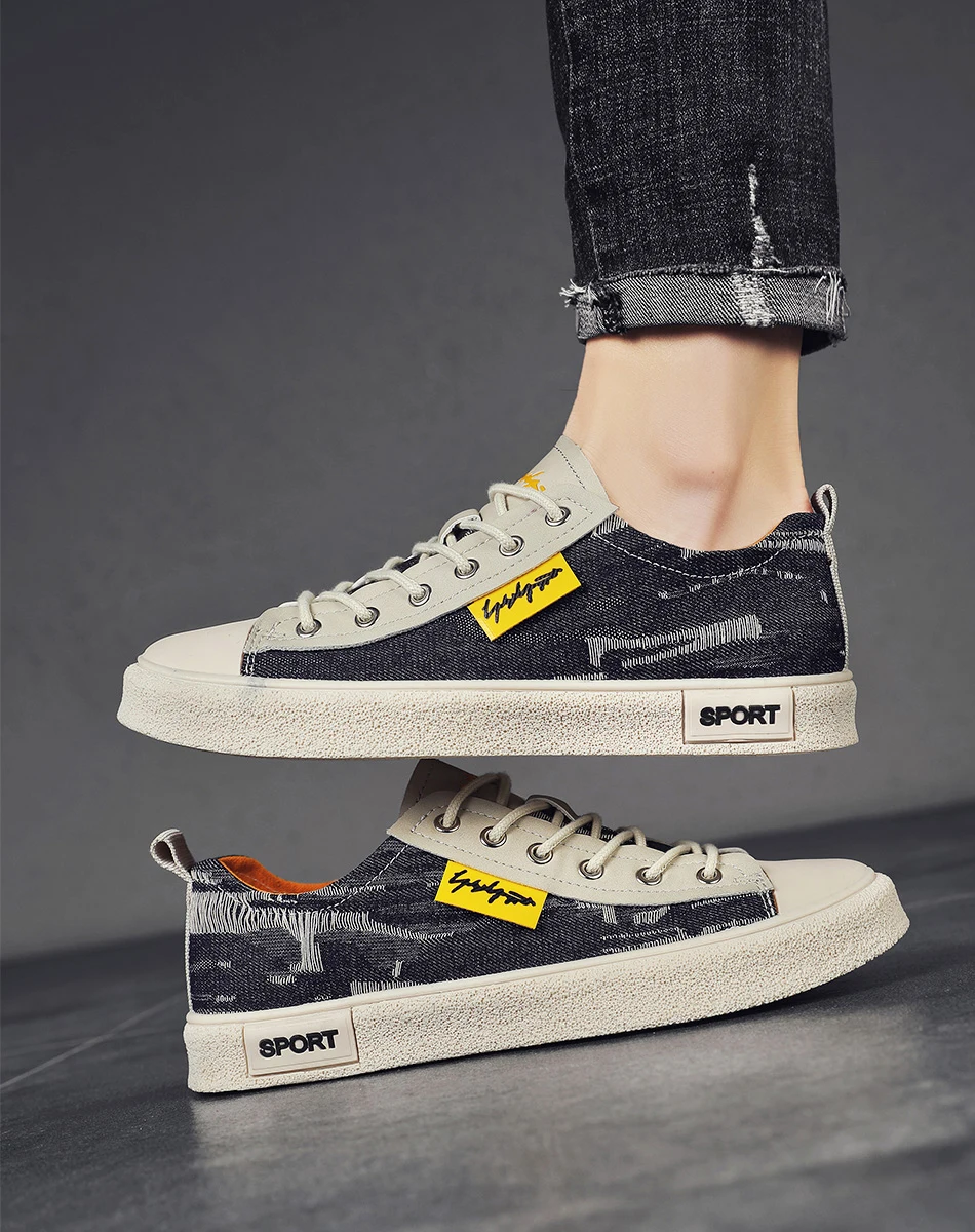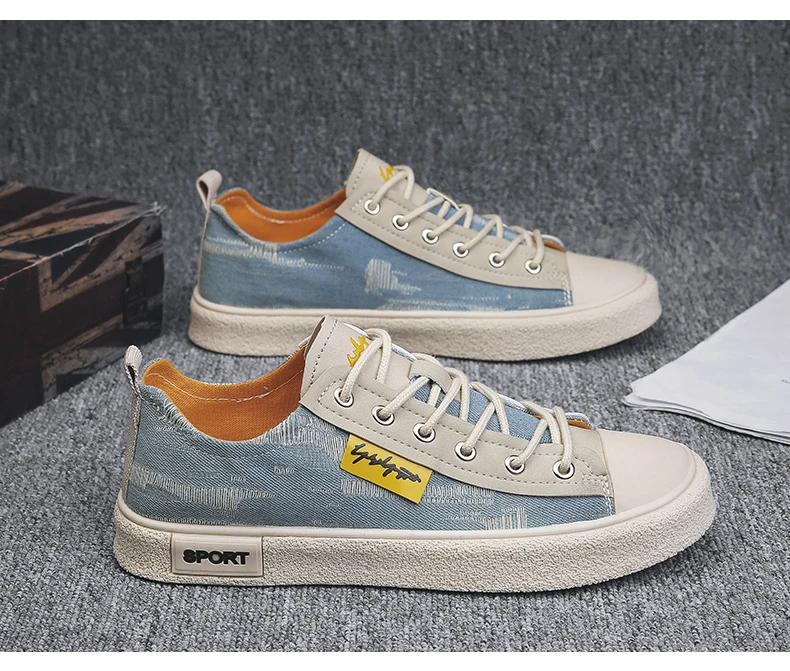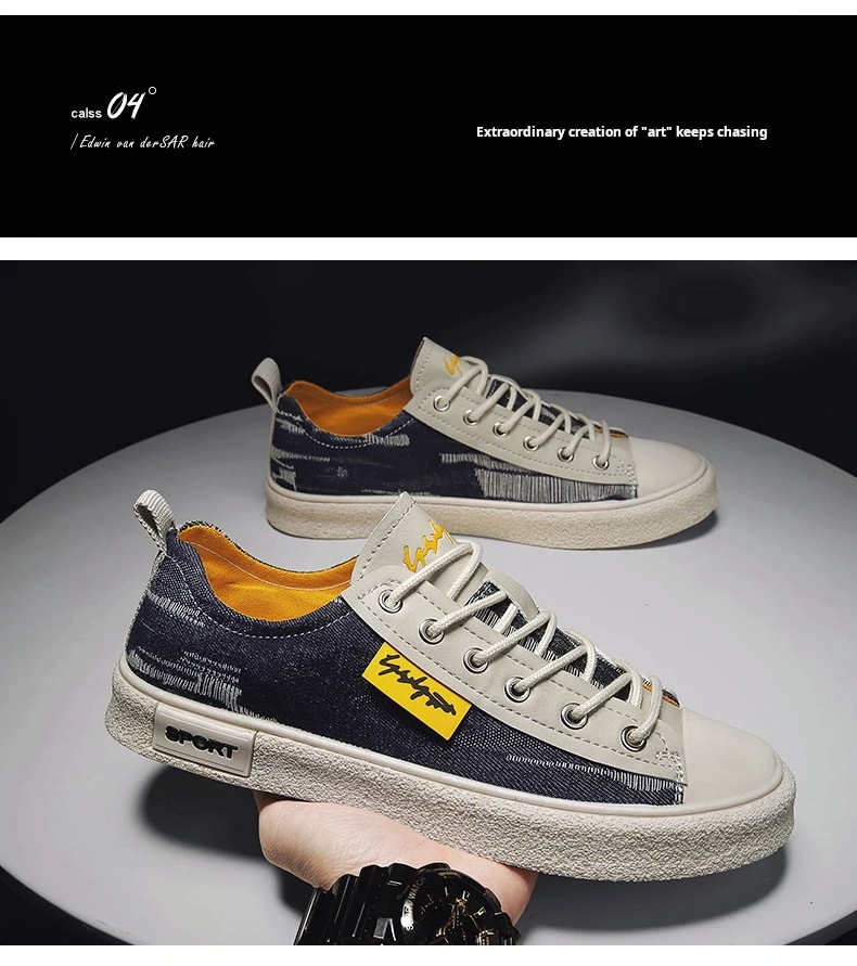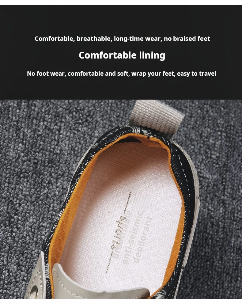 Men’s Low-Top Casual Canvas Slip-On Shoes Breathable Walking Shoes Lightweight Flat Bottom Korean