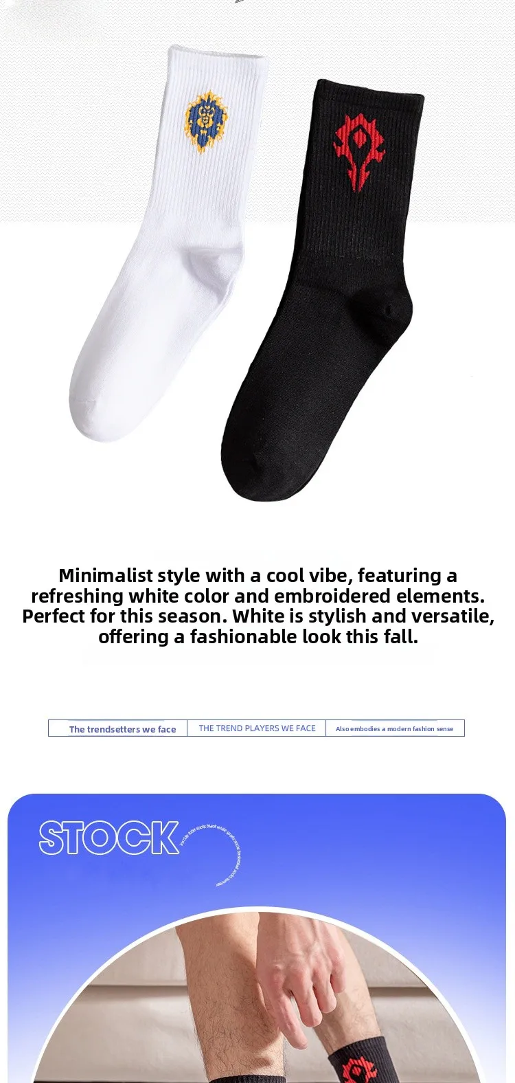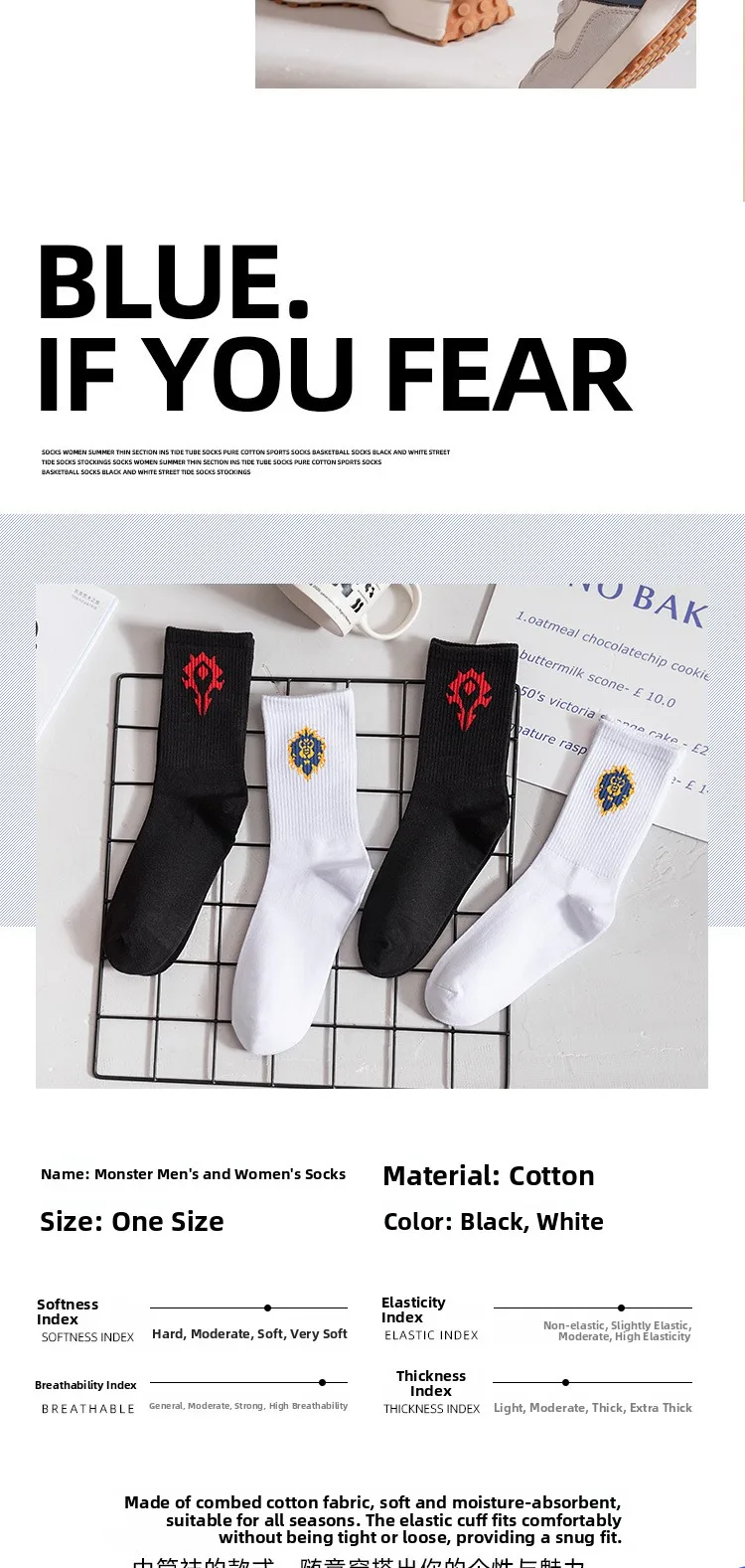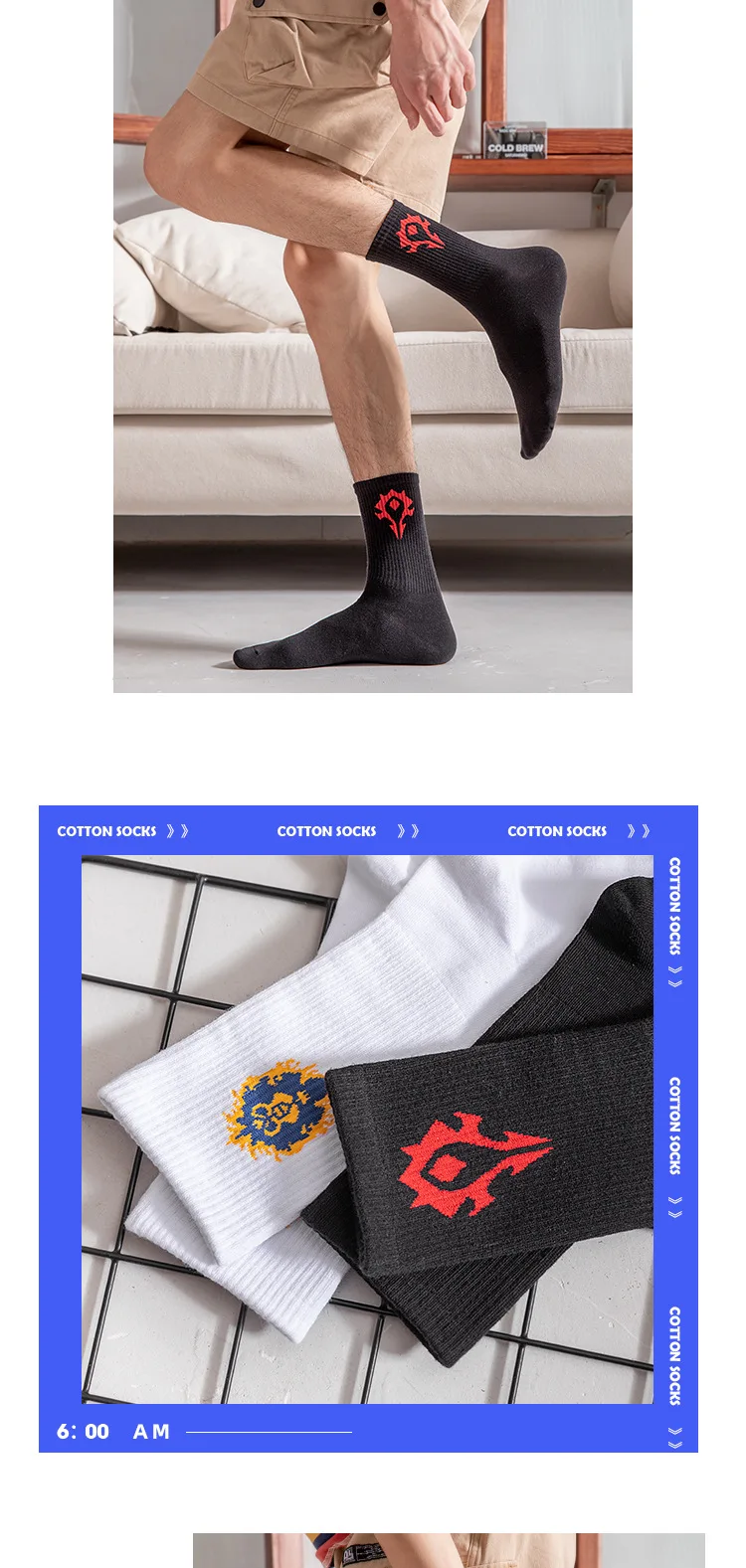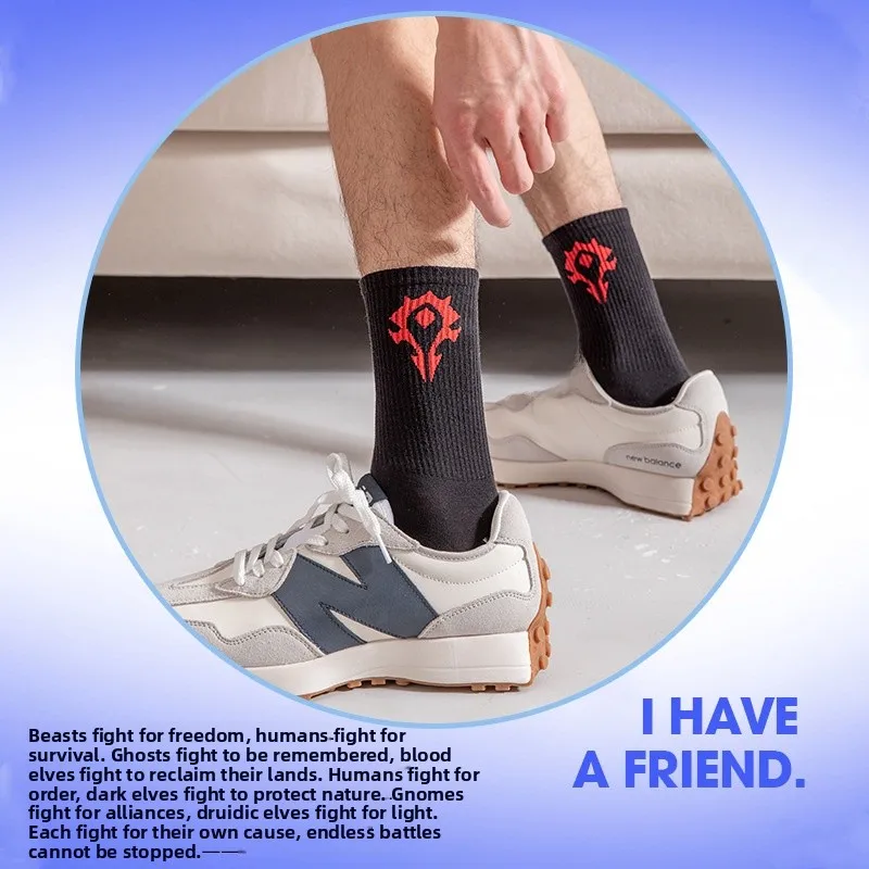 Featuring a sporty design with a cartoon WoW pattern, these socks add a fun touch to your casual wear.