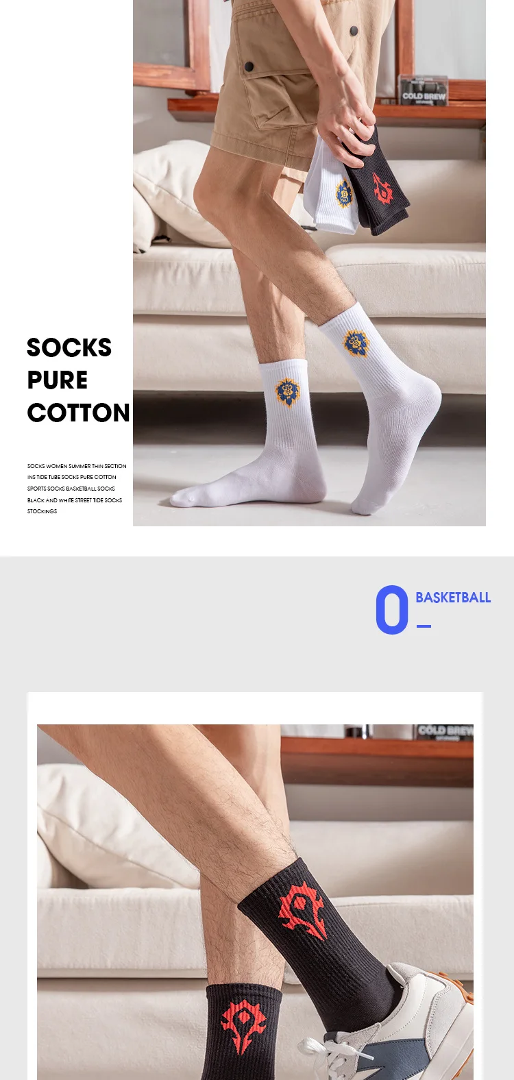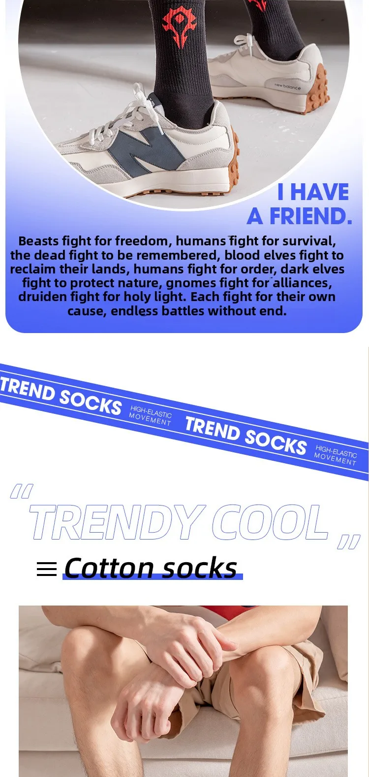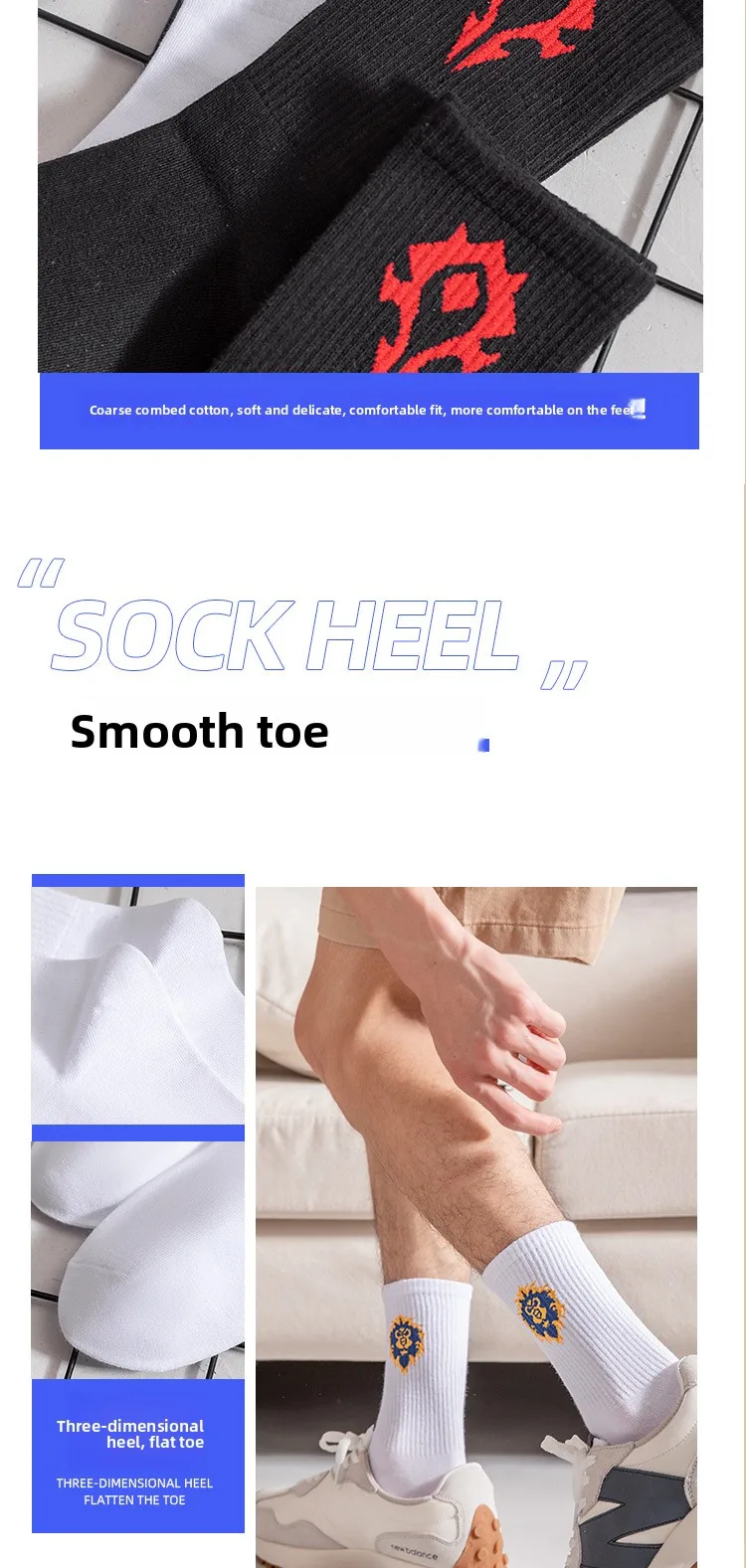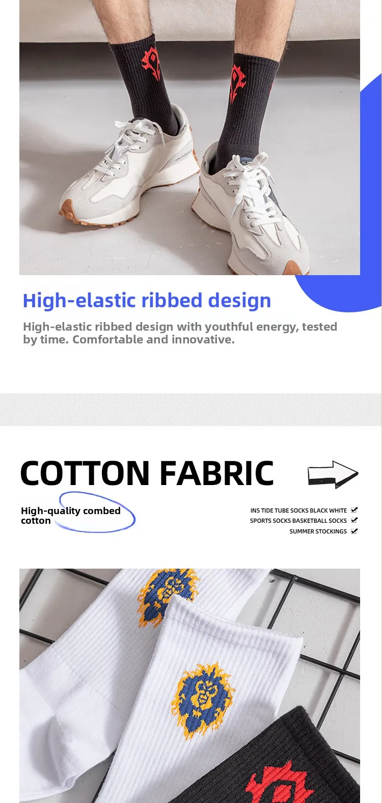 Featuring a sporty design with a cartoon WoW pattern, these socks add a fun touch to your casual wear.