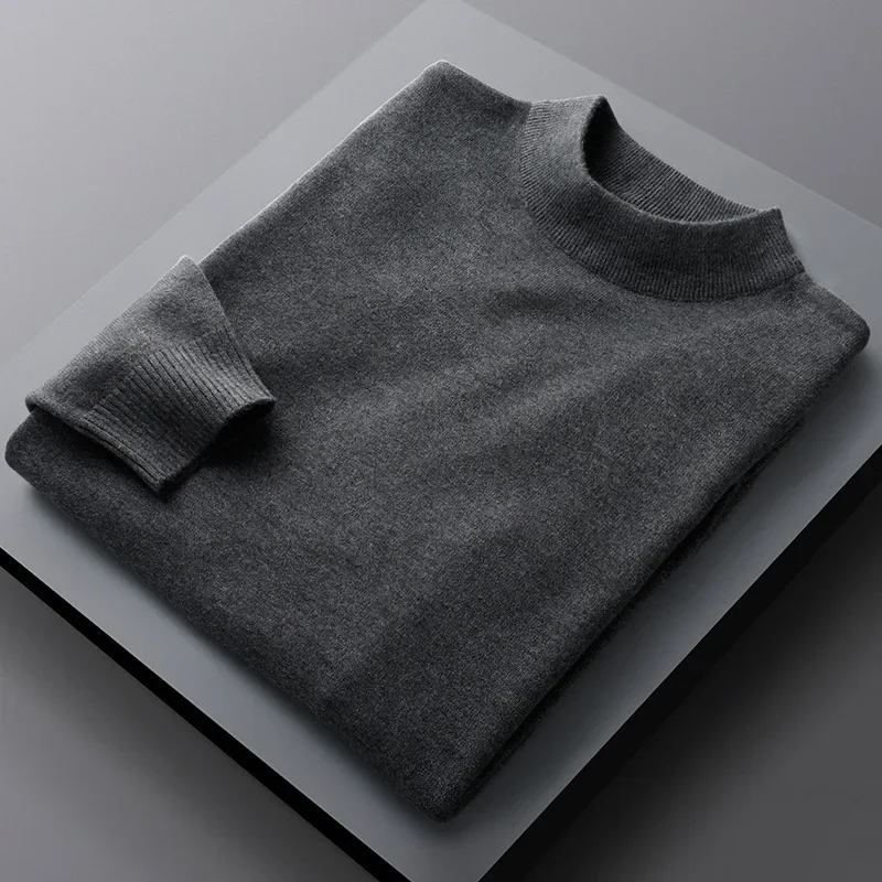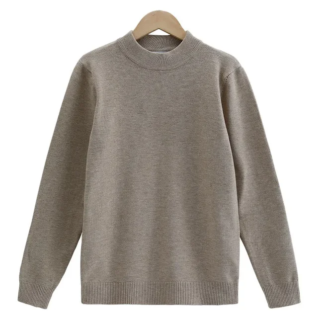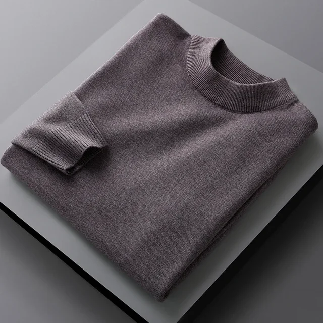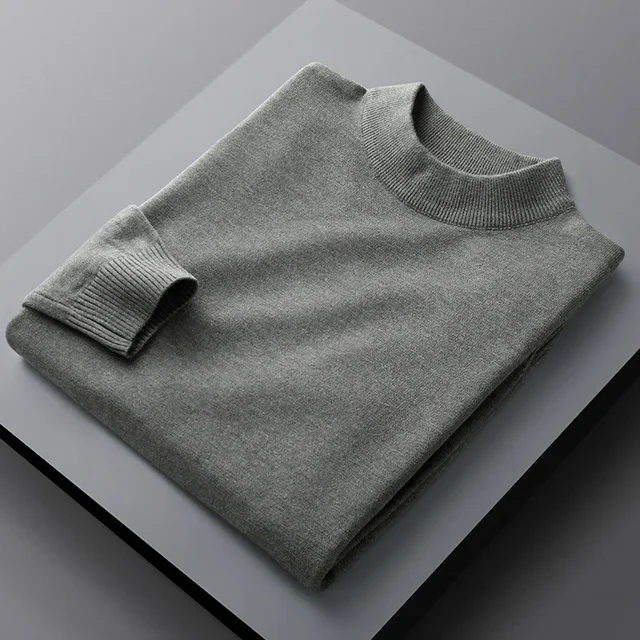 Men’s Mid-Neck Sweater Half-High Collar Knitted Pure Color round Neck Spring Autumn Base Shirt