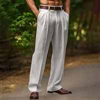 Men's New Casual Loose Straight Leg Long Pants Linen Solid Color Outdoor Daily Breathable Comfortable Men's Fashion Leisure Trou
