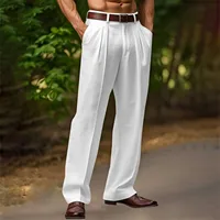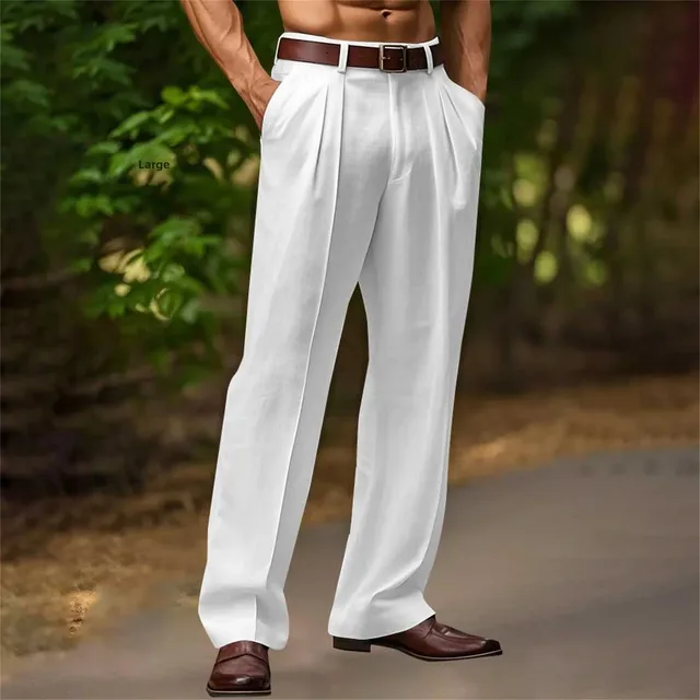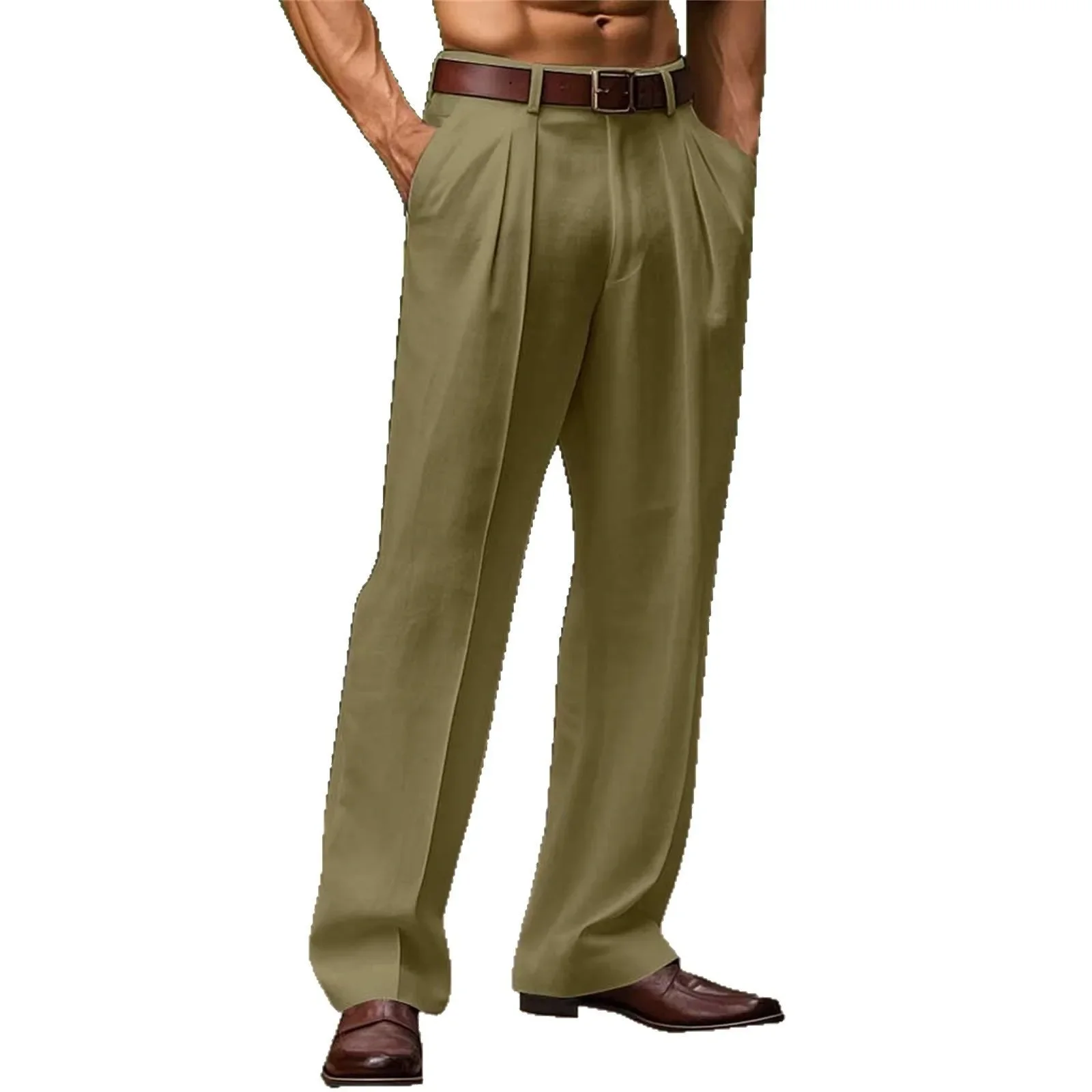 Men’s New Casual Loose Straight Leg Long Pants Linen Solid Color Outdoor Daily Breathable Comfortable