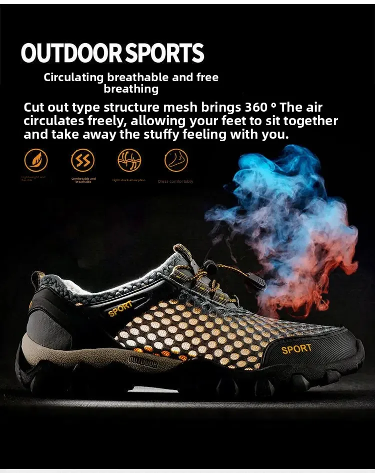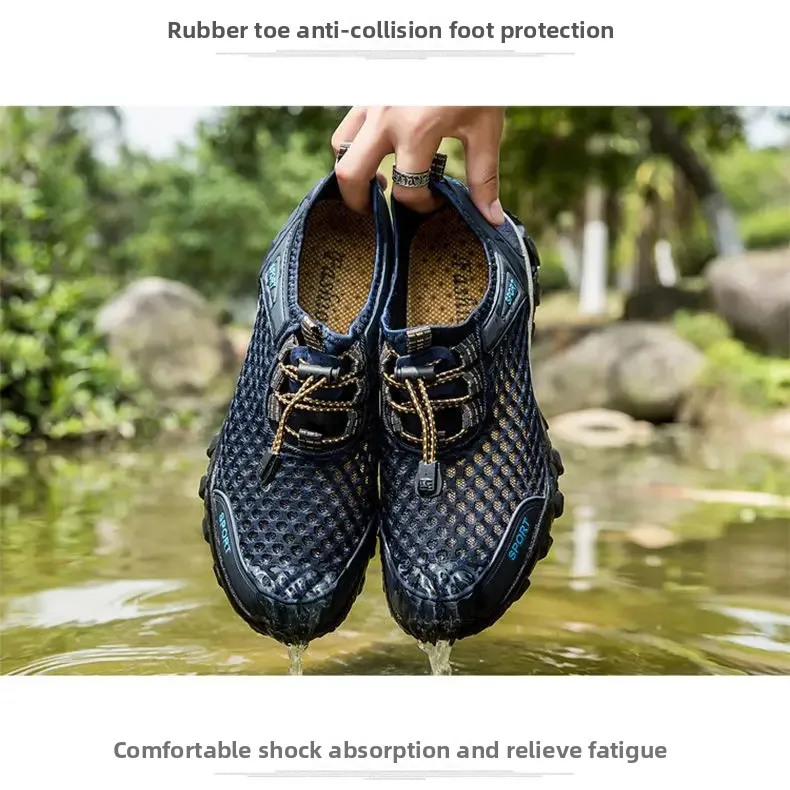 • Breathable Mesh Upper : The Wading Shoes feature a breathable mesh upper, ensuring your feet stay cool and dry during summer hikes.
