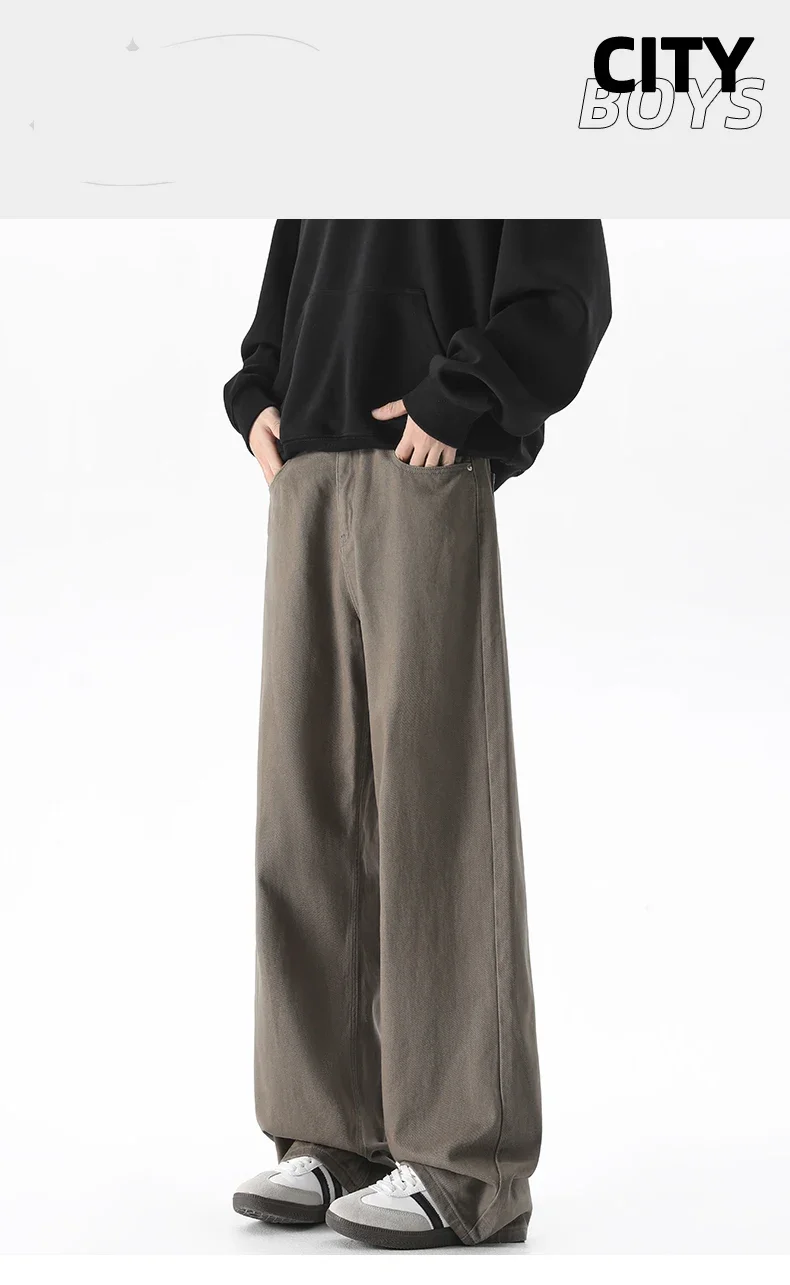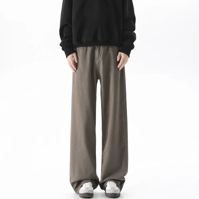 men's oversize y2k black big boys jeans for man washed straight leg brown white loose wide leg baggy pants Men Solid color denim