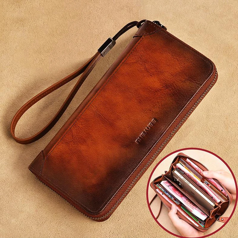 Its long design (26+ inch) provides ample space for cards, cash, and travel documents, perfect for business trips.