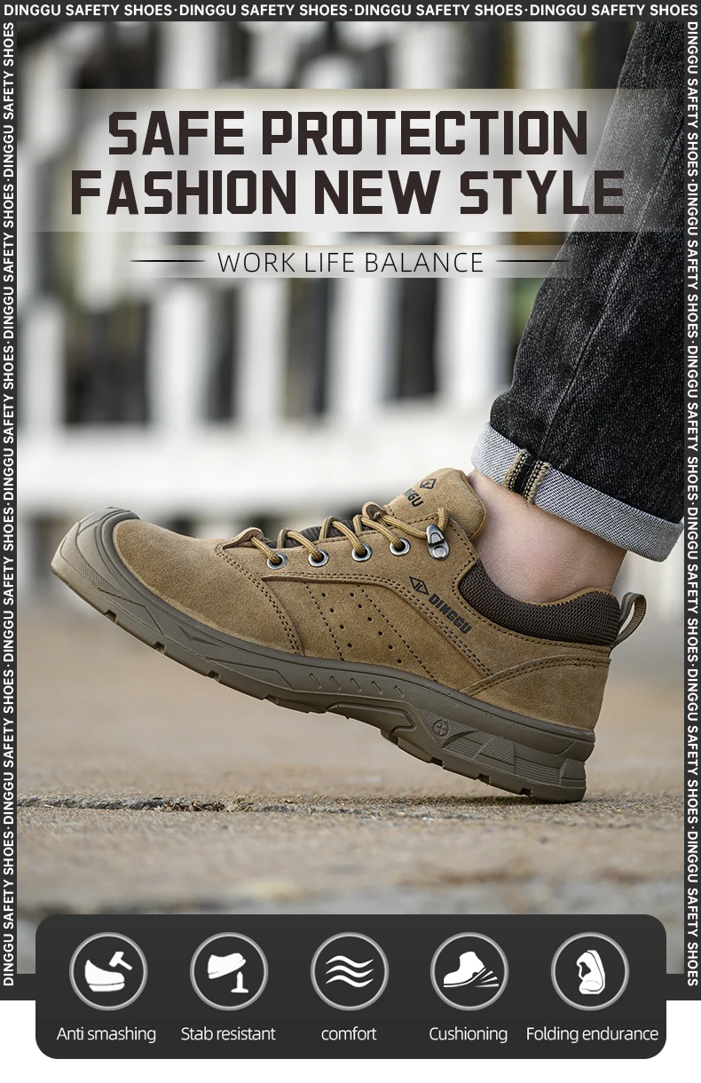 Men’s safety leather boots Steel toe shoes Puncture-Proof Work Boots Safety Shoes Men wear resistant