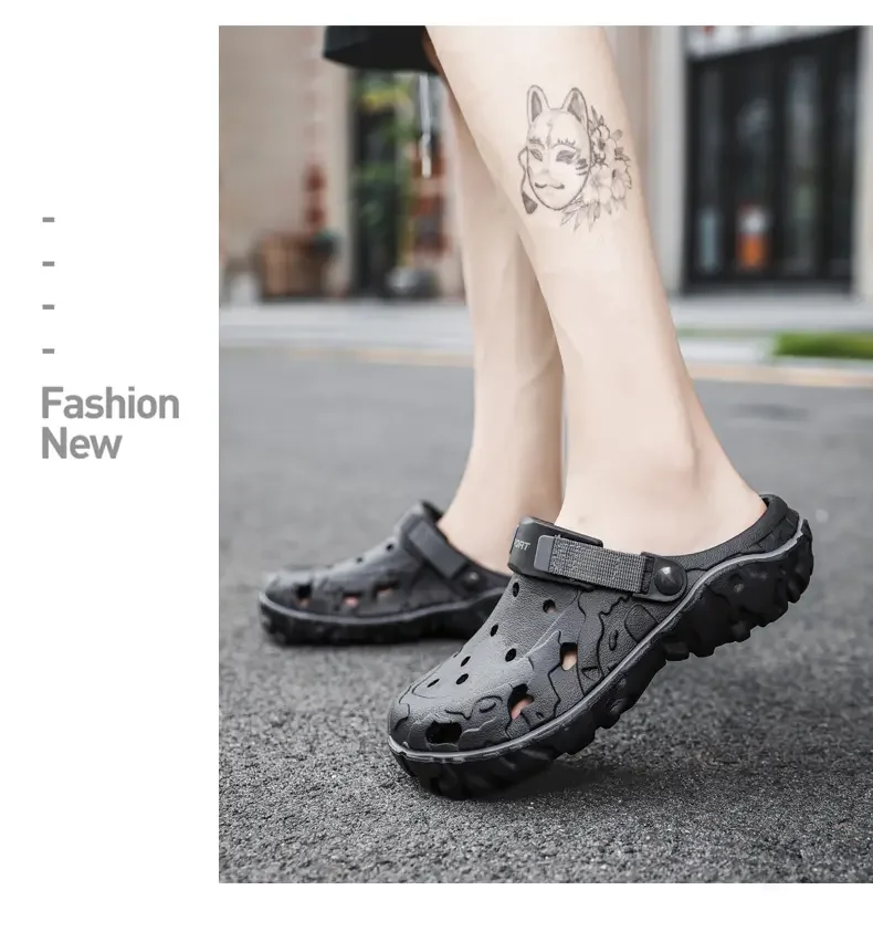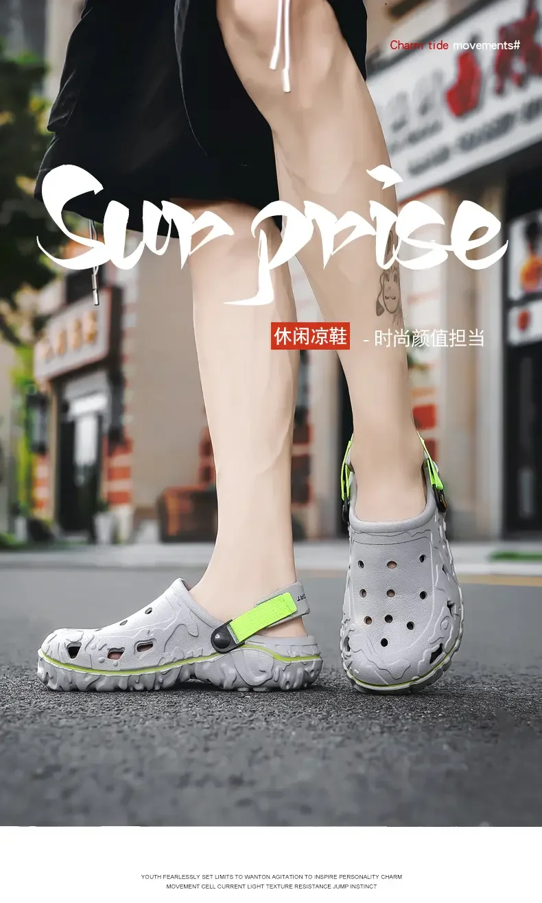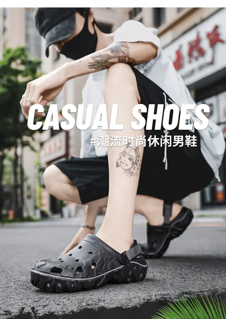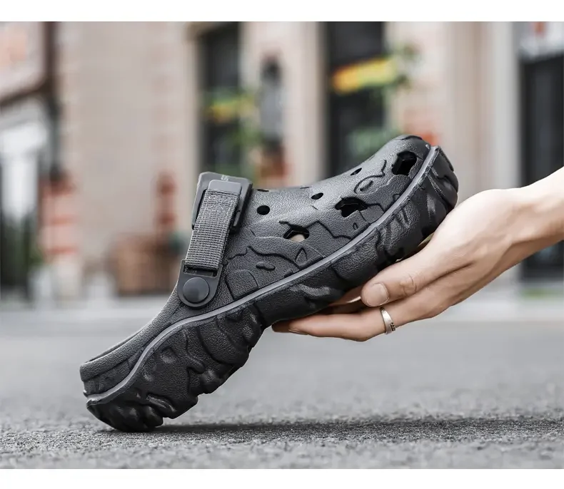 Couples Hole Hole Summer Outdoor Slippers Office Work Shoes Beach Casual Sandals EVA Material Slip-On Men's Sandals