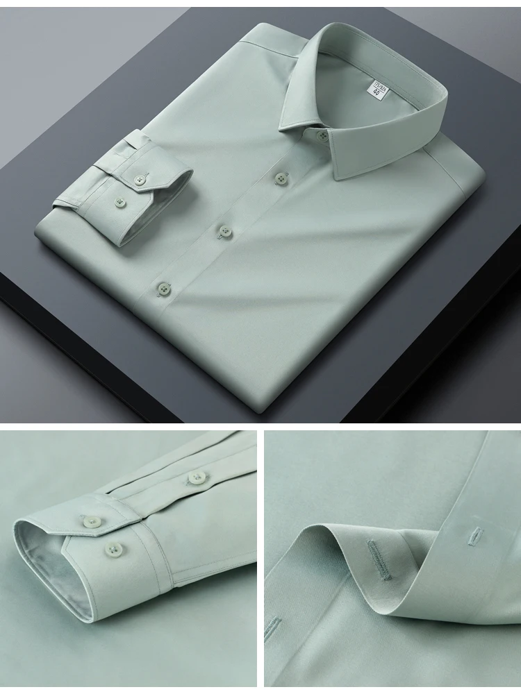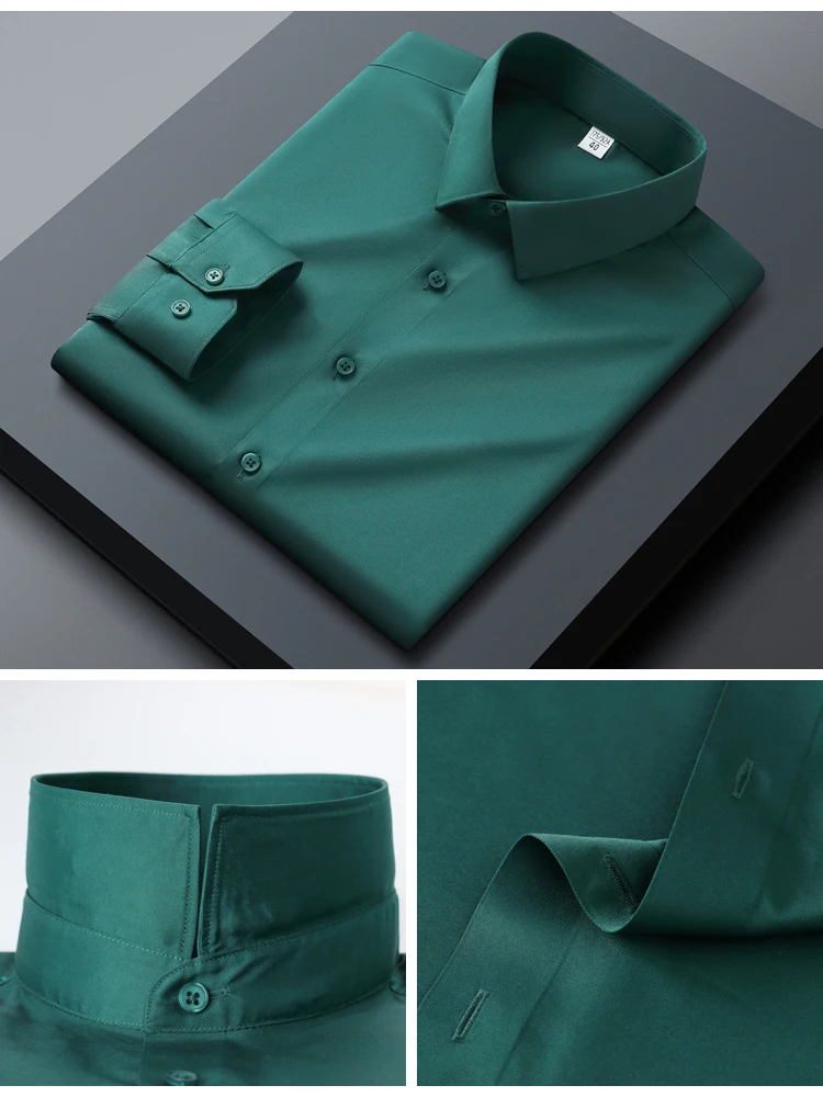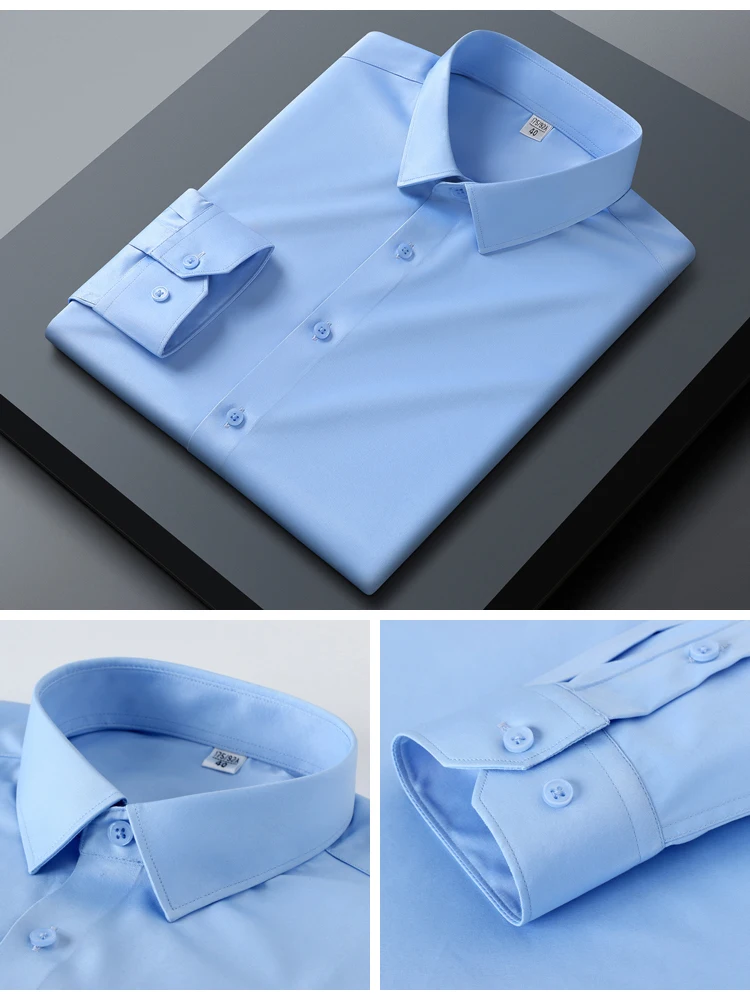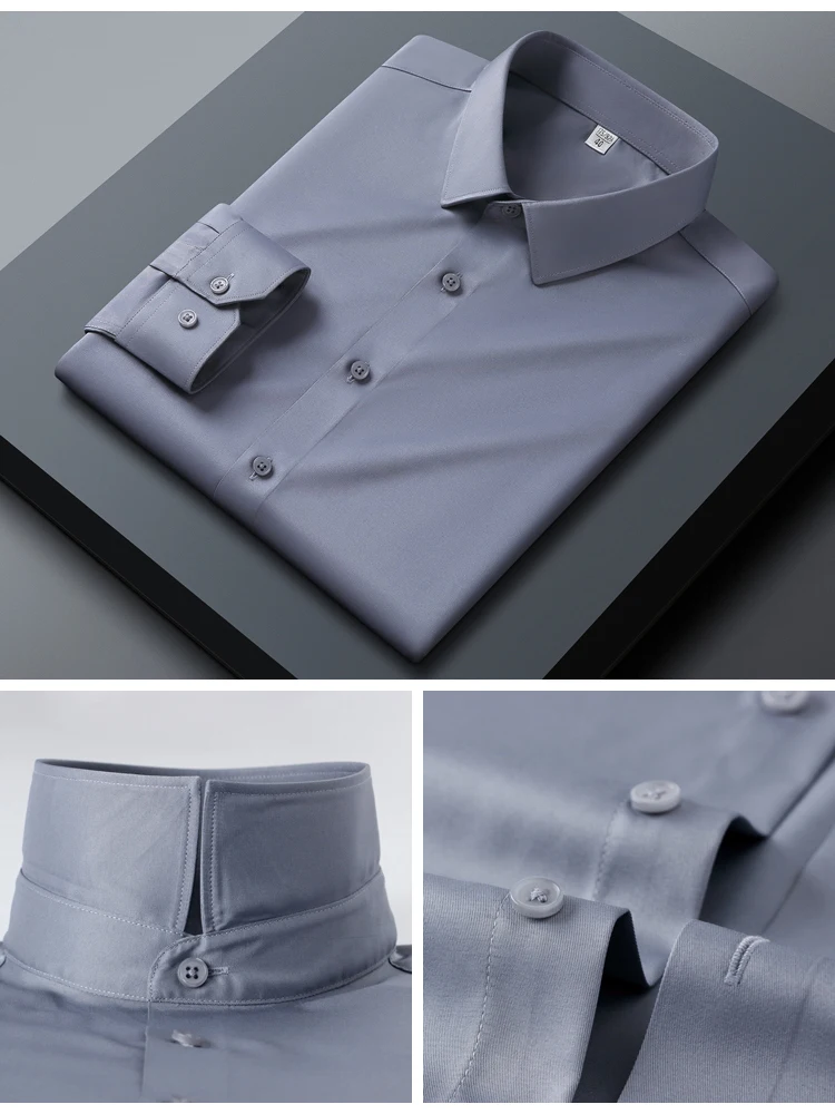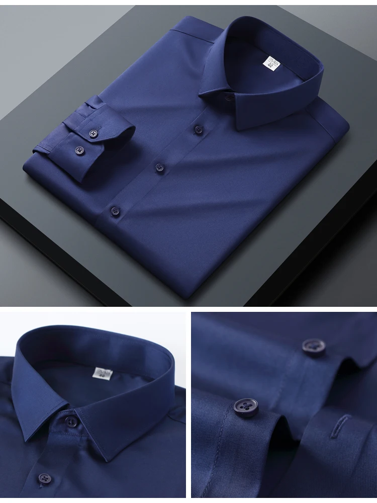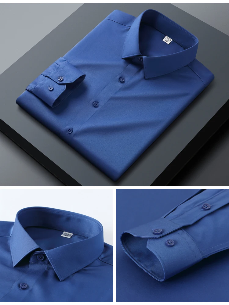 Men's Slim Fit Stretch Smooth Wrinkle Free Long Sleeve Shirt, Soft Comfort Business Casual Office Wear Year-Round Dress Shirts